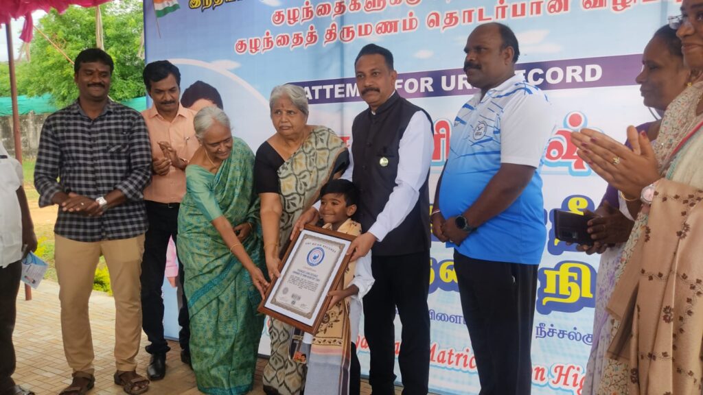 തേനി: റിപ്പബ്ലിക് ഓഫ് ഇന്ത്യ 75 വർഷം പൂർത്തിയാക്കുന്ന വേളയിൽകുട്ടികൾക്കെതിരായ ലൈംഗിക കുറ്റകൃത്യങ്ങൾ, ബാല വിവാഹം എന്നിവയെക്കുറിച്ചുള്ള ബോധവൽക്കരണത്തിനും യു.ആർ.എഫ് ഏഷ്യൻ റെക്കോർഡിനുള്ള ആറ് വയസുകാരൻ്റെ ശ്രമം വിജയിച്ചു.