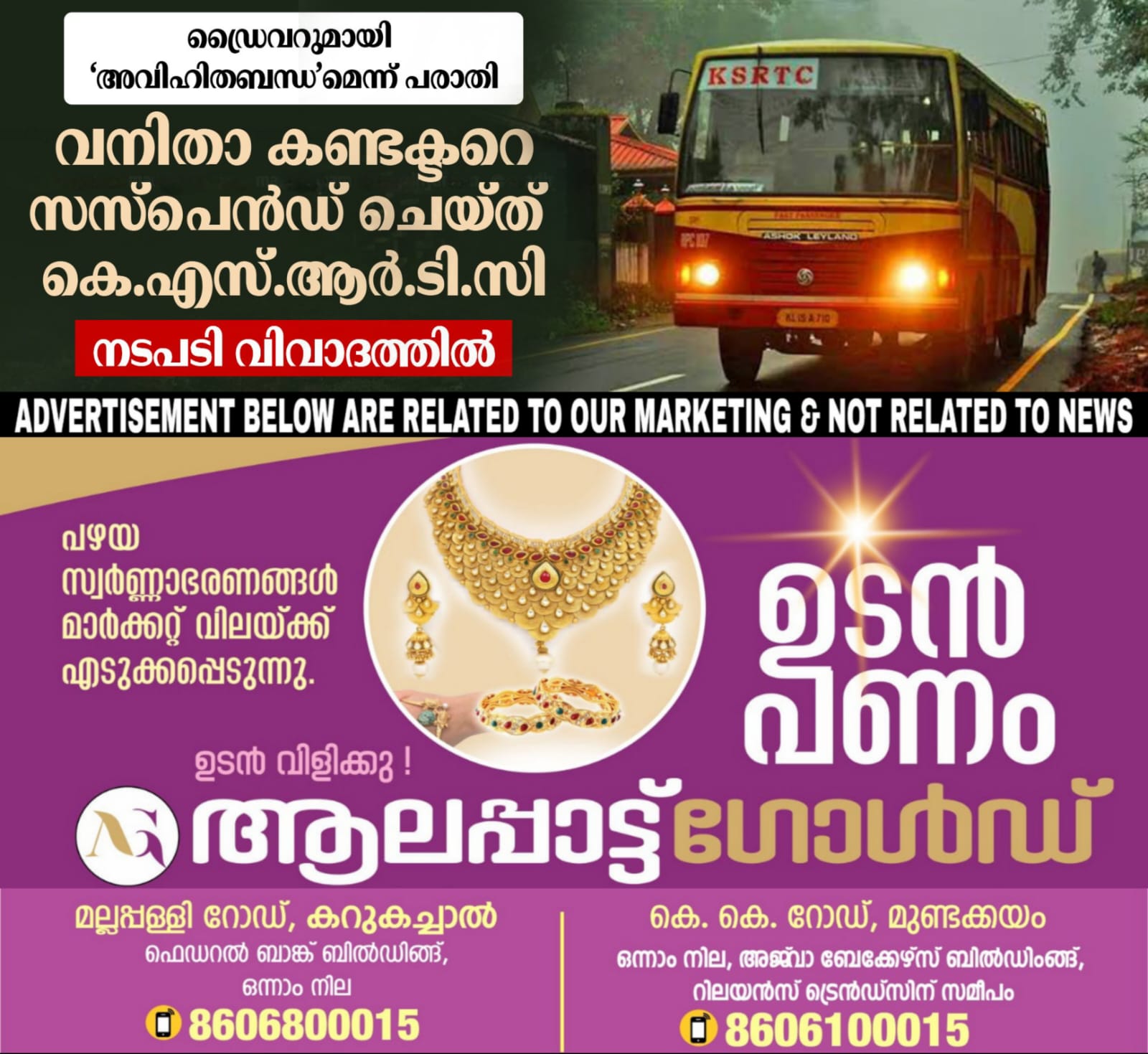 ഡ്രൈവറുടെ ഭാര്യ, വനിതാ കണ്ടക്ടറും ഭർത്താവും തമ്മിൽ അവിഹിത ബന്ധമുണ്ടെന്ന് ആരോപിച്ച് ഗതാഗത മന്ത്രിക്ക് പരാതി നൽകിയിരുന്നു. തെളിവായി ഭർത്താവിന്‍റെ വാട്സാപ്പ് ചാറ്റുകളും ചില ദൃശ്യങ്ങളും നൽകി. കഴിഞ്ഞ ജനുവരിയിൽ ഇരുവരും ഡ്യൂട്ടിയിലുണ്ടായിരുന്ന സർവീസിലെ യാത്രക്കാർ പകർത്തിയ ദൃശ്യങ്ങളും തെളിവായെത്തി. പരാതിയിൽ കഴമ്പുണ്ടെന്ന് കണ്ടെത്തി കെഎസ്ആർടിസി വിജിലൻസ് വിഭാഗം ഉത്തരവിറക്കുകയായിരുന്നു.