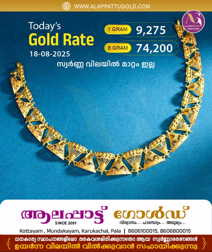 സംസ്ഥാനത്ത് സ്വര്ണവിലയില് മാറ്റമില്ല. 74,200 രൂപയാണ് ഒരു പവന് സ്വര്ണത്തിന്റെ വില. ഗ്രാമിന് 9275 രൂപ നല്കണം. പണിക്കൂലിയും നികുതിയും കൂടി ചേരുമ്പോള് സ്വര്ണവില ഇനിയും ഉയരും. റെക്കോര്ഡുകള് ഭേദിച്ച് കുതിച്ച സ്വര്ണവിലയില് ഈ മാസം ഒന്പതാം തീയതി മുതലാണ് ഇടിവ് രേഖപ്പെടുത്താന് തുടങ്ങിയത്. എട്ടിന് രേഖപ്പെടുത്തിയ 75,760 രൂപയാണ് റെക്കോര്ഡ് ഉയരം. പിന്നീട് വില കുറഞ്ഞതല്ലാതെ വര്ധനവുണ്ടായില്ല. ഒരാഴ്ചയ്ക്കിടെ 1500ലധികം രൂപയാണ് കുറഞ്ഞത്.