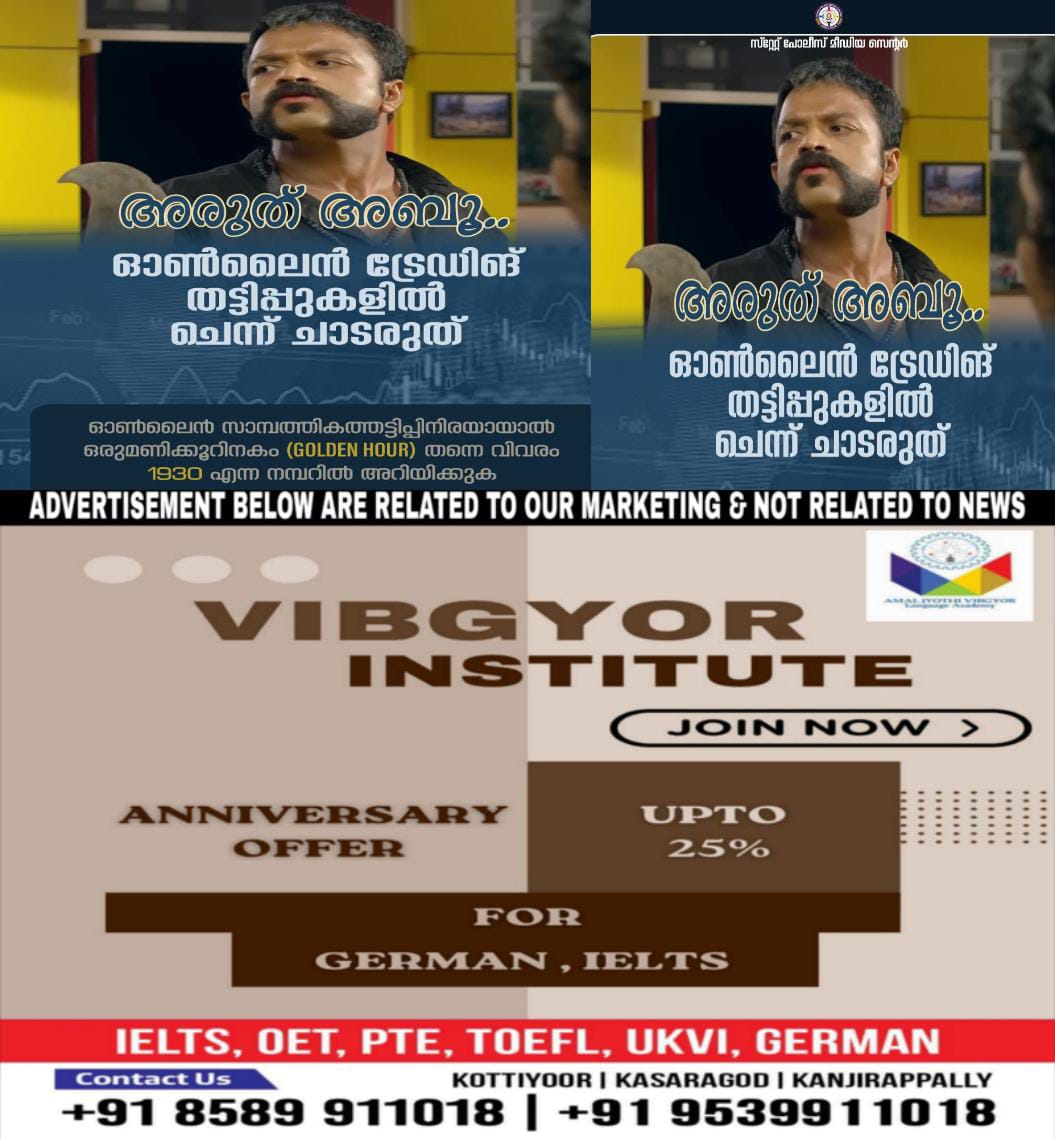 www.cybercrime.gov.in എന്ന വെബ്സൈറ്റിലും പരാതി രജിസ്റ്റര് ചെയ്യാവുന്നതാണ്.