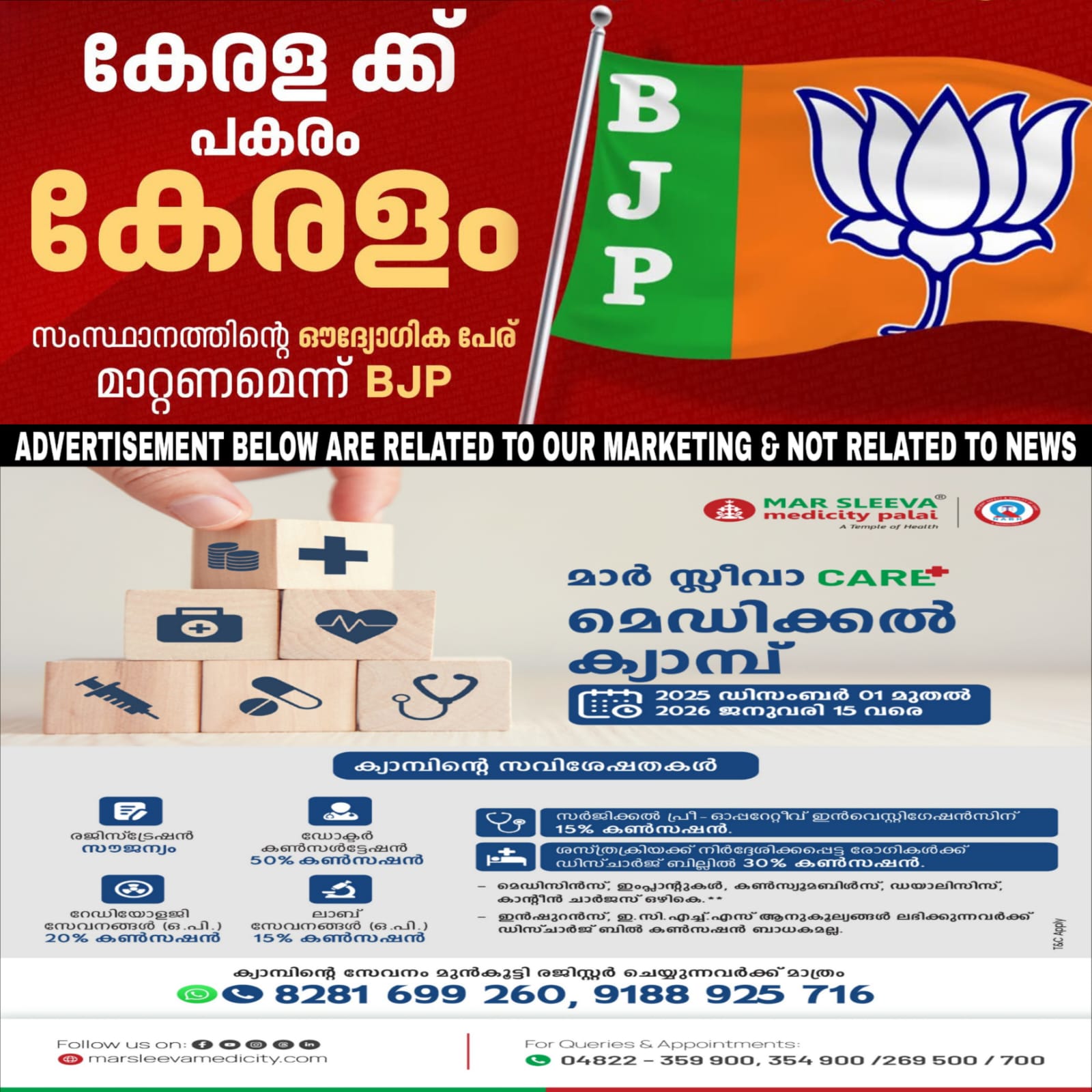 സംസ്ഥാനത്തിൻ്റെ ഔദ്യോഗിക പേര് ‘കേരള’ക്ക് പകരം ‘കേരളം’ എന്നാക്കണമെന്ന് ബിജെപി. നിയമസഭ ഈ വിഷയത്തിൽ പാസാക്കിയ പ്രമേയത്തെ പിന്തുണക്കുന്നുവെന്ന് ബിജെപി അധ്യക്ഷൻ രാജീവ് ചന്ദ്രശേഖർ പ്രതികരിച്ചു. പേര് മാറ്റത്തില്‍ പിന്തുണ അറിയിച്ച് രാജീവ് ചന്ദ്രശേഖർ മുഖ്യമന്ത്രി പിണറായി വിജയന് കത്ത് നൽകി. സംസ്ഥാനത്തിൻ്റെ പേര് കേരളം എന്നാക്കണമെന്നാവശ്യപ്പെട്ട് പ്രധാനമന്ത്രിക്കും കത്ത് നൽകി.