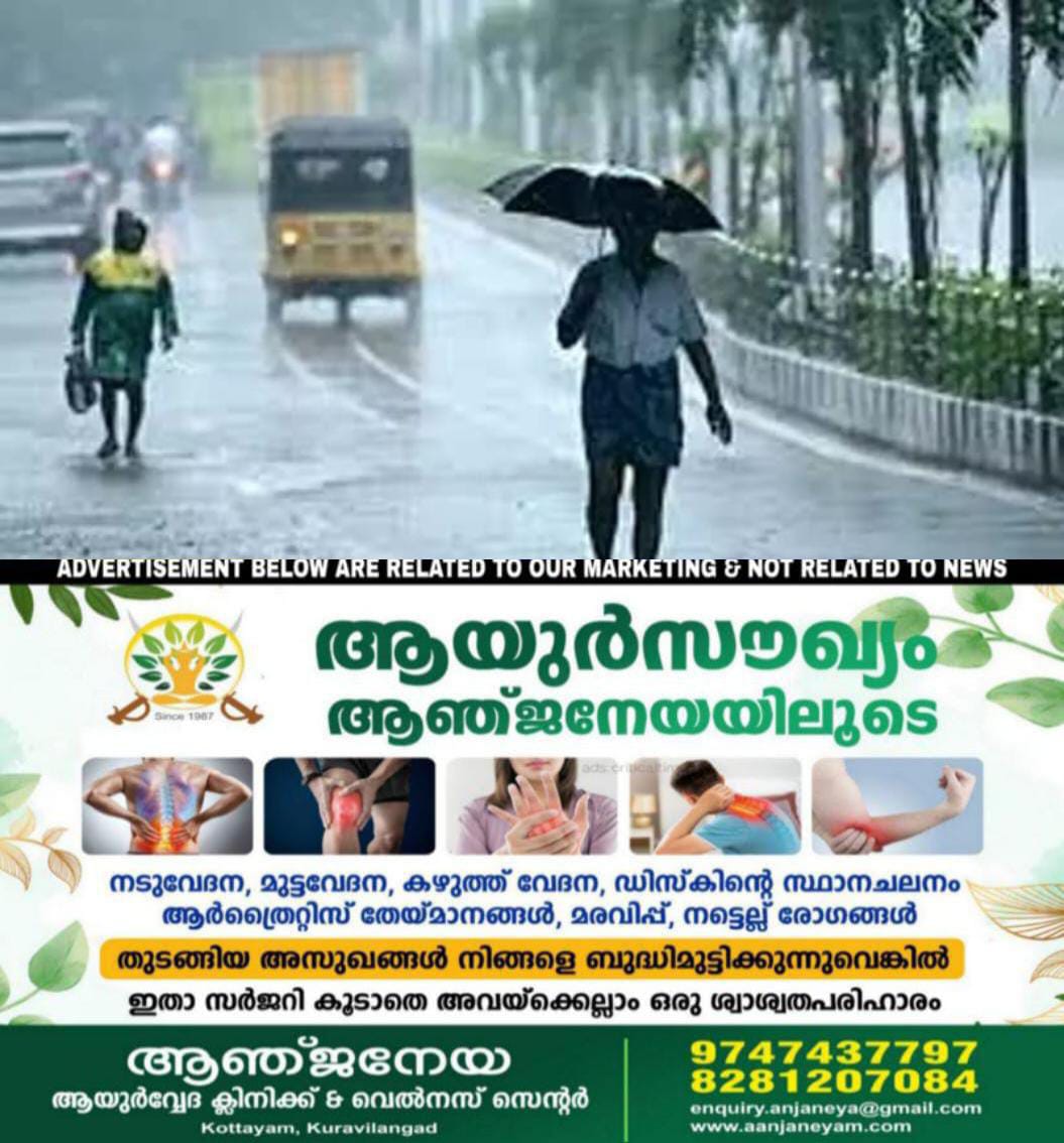 ഇന്ന് തിരുവനന്തപുരം, കൊല്ലം, പത്തനംതിട്ട, ഇടുക്കി, പാലക്കാട്, മലപ്പുറം, കോഴിക്കോട്, വയനാട്, കണ്ണൂര്, കാസര്കോട് ജില്ലകളിലും നാളെ പാലക്കാട്, മലപ്പുറം, കോഴിക്കോട്, വയനാട്, കണ്ണൂര്, കാസര്കോട് ജില്ലകളിലുമാണ് മഴയ്ക്ക് സാധ്യതയുള്ളത്. 16.5 മില്ലി മീറ്റര് മുതല് 64.5 മില്ലി മീറ്റര് വരെയുള്ള മഴയാണ് പ്രതീക്ഷിക്കുന്നത്. സംസ്ഥാനത്ത് ഇന്നലെ വ്യാപകമായി മഴ പെയ്തിരുന്നു. മലയോര മേഖലകളിലെല്ലാം മണിക്കൂറുകളോളം നിര്ത്താതെ മഴ പെയ്തിരുന്നു. അതിനാല് മലയോര മേഖലകളില് കൂടുതല് ജാഗ്രത പാലിക്കണമെന്നും മുന്നറിയിപ്പില് പറയുന്നു.
