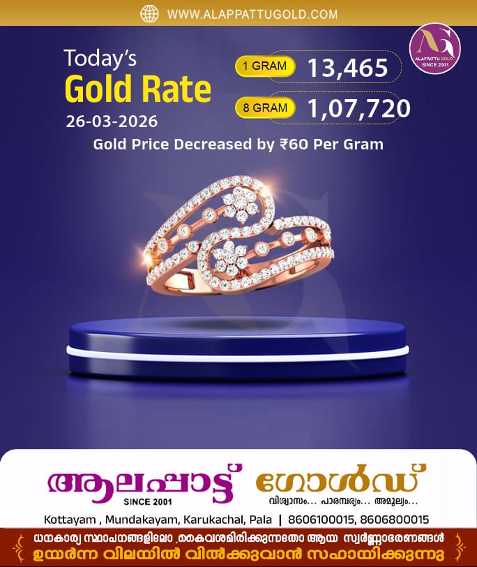 സംസ്ഥാനത്ത് സ്വര്ണവിലയില് ഇടിവ്. ഇന്ന് 480 രൂപ കുറഞ്ഞതോടെ ഒരു പവന് സ്വര്ണത്തിന്റെ വില 1,07,720 രൂപയായി. ഗ്രാമിന് ആനുപാതികമായി 60 രൂപയാണ് കുറഞ്ഞത്. 13,465 രൂപയാണ് ഒരു ഗ്രാം സ്വര്ണത്തിന്റെ വില. ഇന്നലെ രണ്ടു തവണകളായി പവന് 3400 രൂപയാണ് വര്ധിച്ചത്.ആഗോള വിപണിയില് എണ്ണ വില കുറഞ്ഞതാണ് കഴിഞ്ഞ ദിവസങ്ങളില് സ്വര്ണവില ഉയരാന് കാരണം. എന്നാല് ഇന്ന് എണ്ണവില വീണ്ടും ബാരലിന് നൂറ് ഡോളറിന് മുകളില് എത്തി നില്ക്കുകയാണ്.