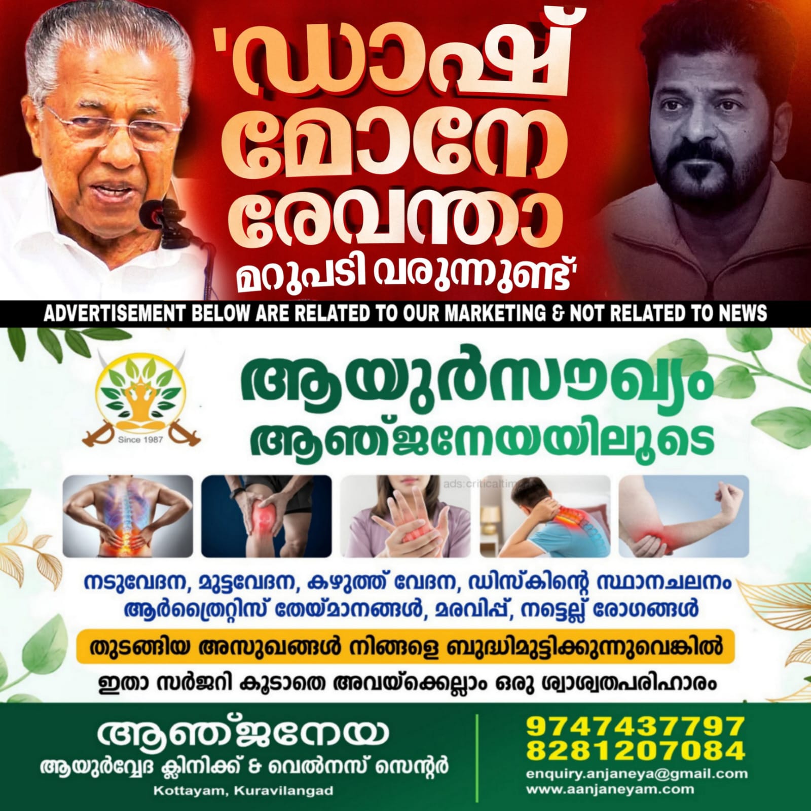 തെലങ്കാന മുഖ്യമന്ത്രി രേവന്ത് റെഡ്ഡിക്കെതിരെ മോശം പ്രയോഗവുമായി മുഖ്യമന്ത്രി പിണറായി വിജയന്‍. ഡാഷ് മോനേ രേവന്താ…. മറുപടി വരുന്നുണ്ട് എന്നു മാത്രമേ ഇപ്പോള്‍ പറയുന്നുള്ളൂ എന്നായിരുന്നു പിണറായി വിജയന്റെ പ്രതികരണം. രേവന്ത് റെഡ്ഡി കേരളത്തില്‍ പറഞ്ഞ കാര്യങ്ങള്‍ക്ക് താന്‍ ഇപ്പോള്‍ മറുപടി പറയാനില്ലെന്നും പിണറായി വിജയന്‍ വാര്‍ത്താസമ്മേളനത്തില്‍ പറഞ്ഞു.