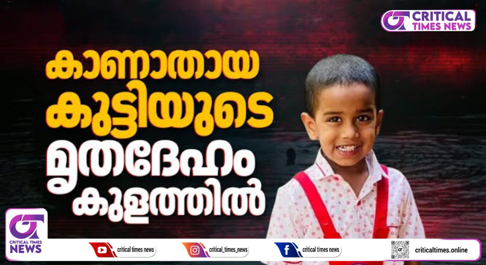 അമ്പാട്ടുപാളയം എരുമൻകോട് മുഹമ്മദ് അനസ്– തൗഹിത ദമ്പതികളുടെ ഇളയമകൻ സുഹാനെ ശനിയാഴ്ച ഉച്ചയ്ക്ക് 12 മണി മുതലാണ് കാണാതായത്. വീട്ടുമുറ്റത്ത് കളിക്കുന്നതിനിടെ സുഹാൻ സഹോദരനുമായി പിണങ്ങി വീട്ടിൽ നിന്നും ഇറങ്ങിയതാണെന്ന് ബന്ധുക്കൾ പറയുന്നു.