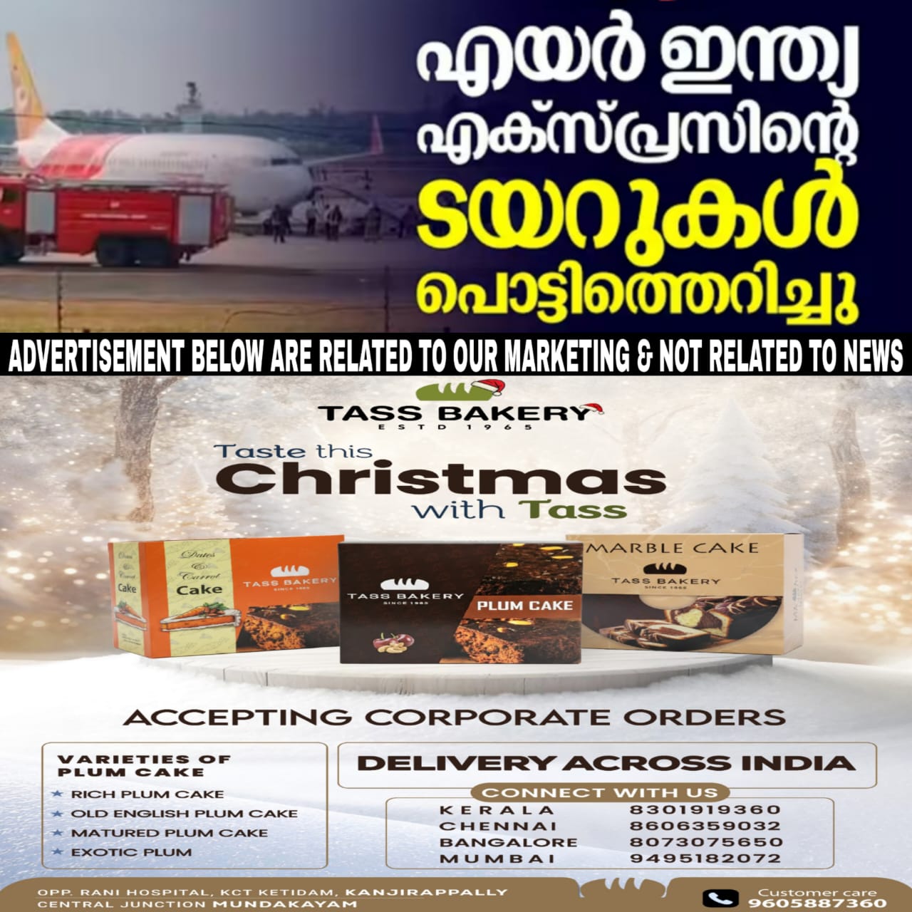 കൊച്ചിയിൽ വലിയ ദുരന്തം ഒഴിവായത് തലനാരിഴയ്ക്ക്. നെടുമ്പാശ്ശേരിയിൽ അടിയന്തര ലാൻഡിങ് നടത്തിയ എയർ ഇന്ത്യ എക്സ്പ്രസ് വിമാനത്തിന്റെ ടയറുകൾ പൊട്ടി. ലാൻഡിങ് ​ഗിയറിലെ തകരാറിനെ തുടർന്നാണ് വിമാനം അടിയന്തരമായി ഇറക്കിയത്. വിമാനത്തിൽ 160 യാത്രക്കാരാണ് ഉണ്ടായിരുന്നത്. ജിദ്ദയിൽ നിന്ന് കരിപ്പൂരിൽ ഇറങ്ങേണ്ട എയർ ഇന്ത്യ എക്സപ്രസ് വിമാനമാണ് നെടുമ്പാശ്ശേരിയിൽ ഇറക്കിയത്. യാത്രക്കാർ സുരക്ഷിതരാണെന്ന് സിയാൽ അറിയിച്ചു.