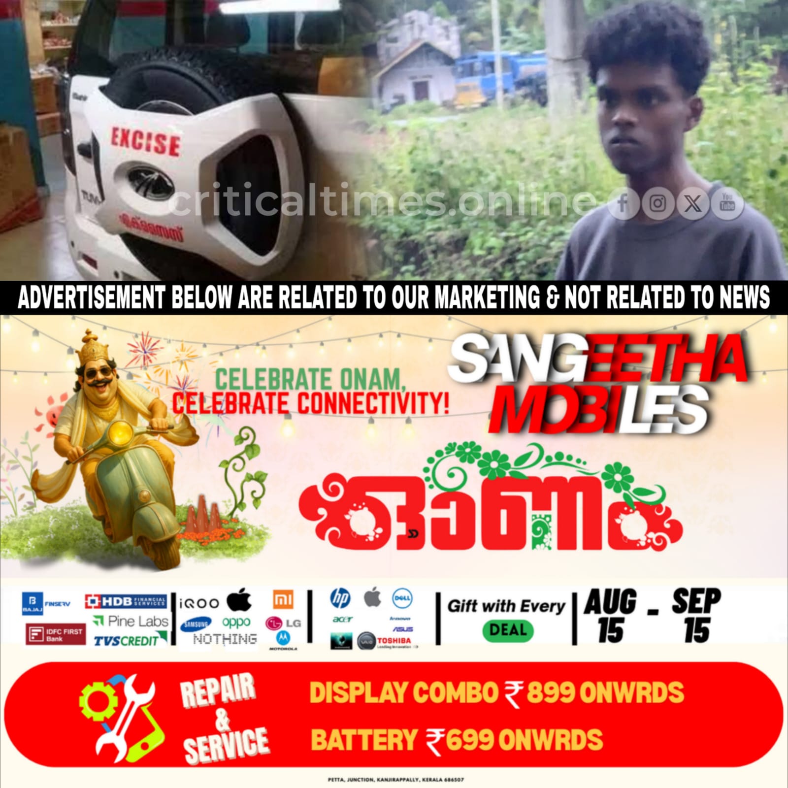 പരിശോധനയ്ക്ക് എത്തിയ എക്സൈസ് ഉദ്യോഗസ്ഥരെ പ്രതി കരിങ്കല്ലിന് തലക്കെടിച്ച് രക്ഷപ്പെടാൻ ശ്രമിച്ചു. ഇതേ തുടർന്ന് എക്സൈസ് സംഘം യുവാവിനെ സാഹസികമായി കീഴ്പെടുത്തി. പ്രതിയ്ക്ക് എതിരെ എൻഡിപിഎസ് ആക്ട് പ്രകാരം കേസെടുത്ത ശേഷം കുമരകം പോലീസിന് കൈമാറി.