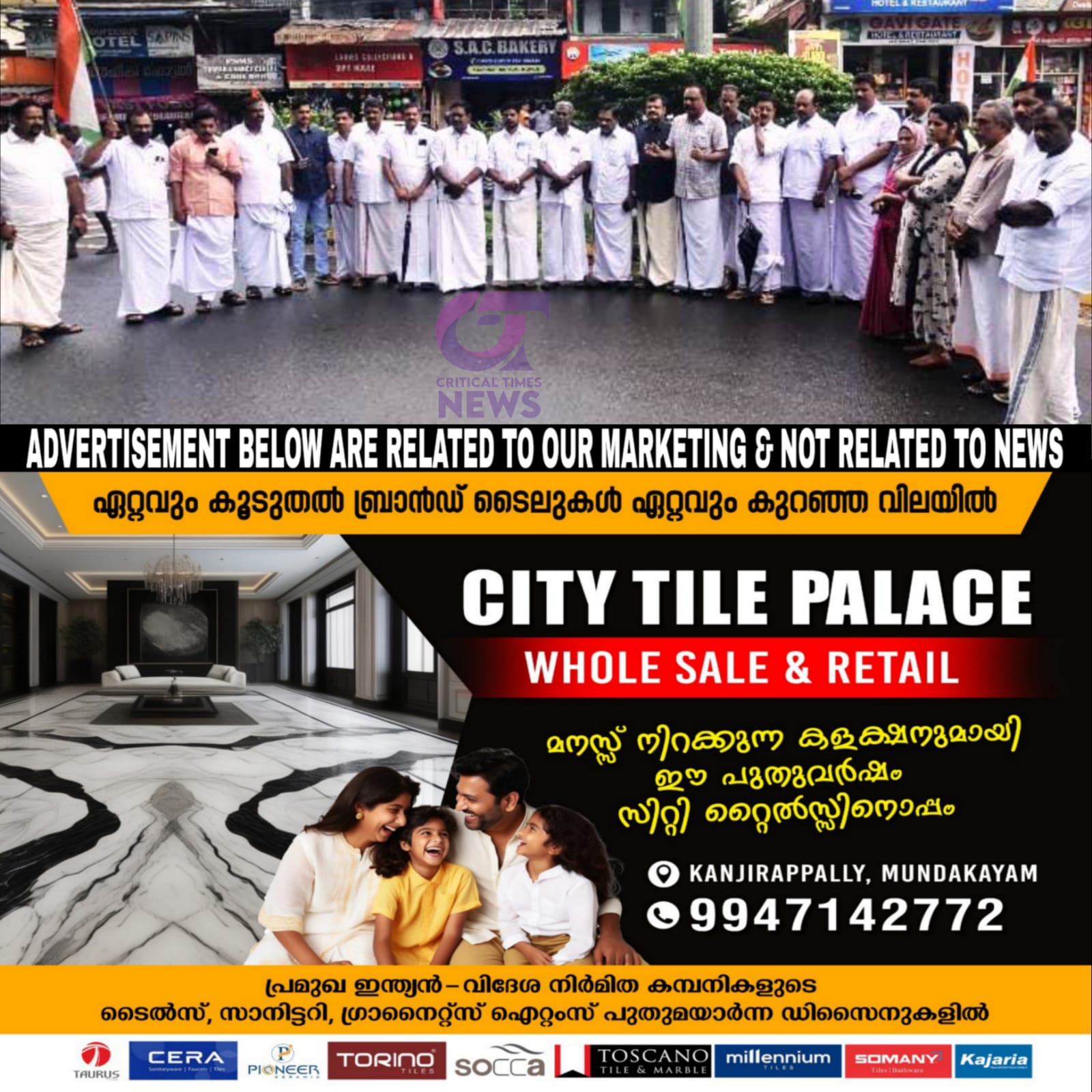 കാഞ്ഞിരപ്പള്ളി: കോണ്ഗ്രസ് പ്രസിഡണ്ട് മല്ലികാര്ജ്ജുന് ഖാര്ഗെ, രാഹുല് ഗാന്ധി, പ്രിയങ്ക ഗാന്ധി, കെ.സി. വേണുഗോപാല് തുടങ്ങി കോണ്ഗ്രസ്, ഇന്ത്യാ സഖ്യ നേതാക്കളെ ‘വോട്ട് കൊള്ള’ വിഷയത്തിൽ തെരെഞ്ഞെടുപ്പ് കമ്മീഷന് ഓഫിസിലേക്ക് നടത്തിയ സമാധാനപരമായ പ്രതിഷേധ മാര്ച്ചിനിടെ അന്യായമായി അറസ്റ്റ് ചെയ്ത നടപടിക്കെതിരെ കോൺഗ്രസ് കാഞ്ഞിരപ്പള്ളി ബ്ലോക്ക് കമ്മറ്റിയുടെ നേതൃത്വത്തിൽ പേട്ടക്കവലയിൽ ധർണ്ണ നടത്തി.