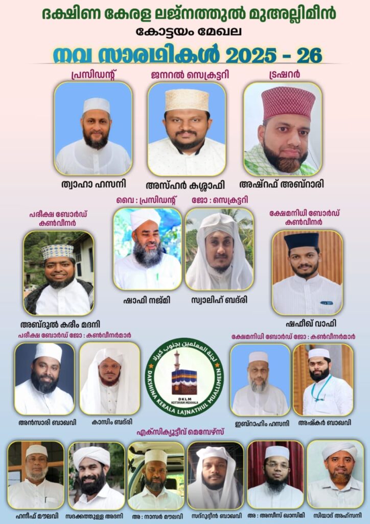 പ്രസിഡന്റ്: ത്വാഹ മൗലവി ഹസനി, വൈ:പ്രസിഡന്റ്: ഷാഫി മൗലവി നജ്മി, ജ: സെക്രട്ടറി: അസ്ഹർ കശ്ശാഫി, ജോ: സെക്രട്ടറി: സ്വാലിഹ് ബദ്രി, ട്രഷറർ: അഷറഫ് അബ്റാരി, പരീക്ഷാ ബോർഡ് കൺവീനർ: അബ്ദുൽ കരീം മദനി, ജോ: കൺവീനർമാർ: മൗലവി അൻസാരി ബാഖവി, മൗലവി ഖാസിം ബദ്രി ക്ഷേമനിധി ബോർഡ് കൺവീനർ: ഷെഫീഖ് വാഫി, ജോ: കൺവീനർമാർ: ഇബ്റാഹിം ഹസനി, മൗലവി അഷ്കർ ബാഖവി, എക്സിക്യൂട്ടീവ് അംഗങ്ങൾ: ഹനീഫ് മൗലവി, സദഖത്തുള്ള അദനി, അബ്ദുനാസർ മൗലവി, സ്വദറുദ്ദീൻ ബാഖവി, അബ്ദുൽ അസീസ് ഖാസിമി, സിയാദ് അഹ്സനി