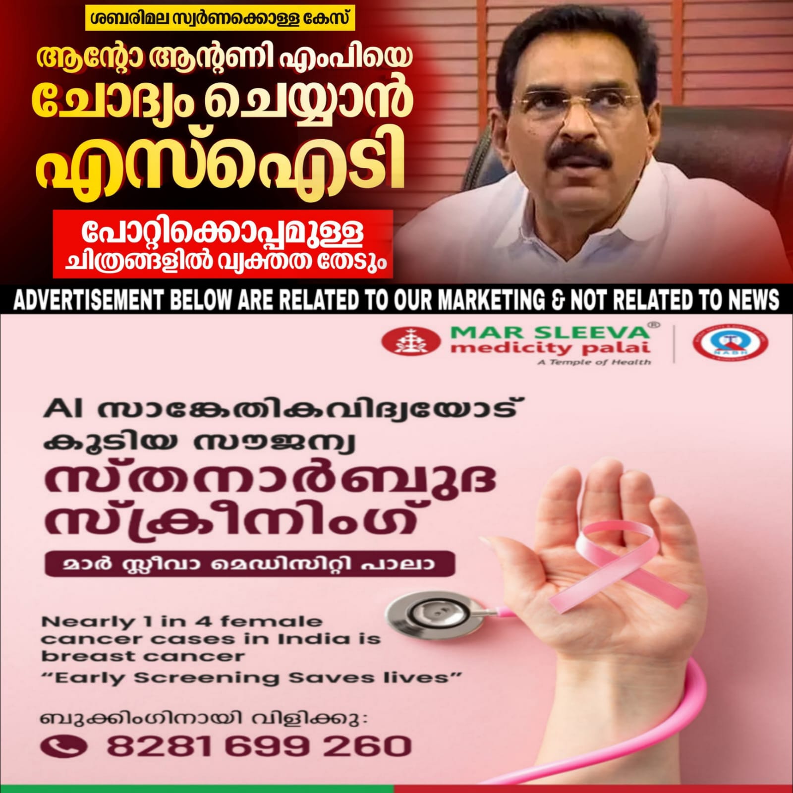 നെടുമ്പറമ്പിൽ ക്രെഡിറ്റ് സിൻഡിക്കറ്റ് നിക്ഷേപ തട്ടിപ്പുമായി ബന്ധപ്പെട്ട എൻഫോഴ്സ്മെന്റ് ഡയറക്ടറേറ്റിന്റെ അന്വേഷണത്തിൽ ആന്റോ ആന്റണി എം.പിയെ ചോദ്യം ചെയ്യും. ആന്റോ ആന്റണിക്ക് നെടുമ്പറമ്പിൽ ഫിനാൻസ് ഉടമ എൻ.എം.രാജു നൽകിയത് തട്ടിപ്പു പണമാണെന്നാണ് വിലയിരുത്തൽ. തിരഞ്ഞെടുപ്പ് പ്രചാരണത്തിനായി 2019ൽ പലതവണയായി രണ്ടുകോടി രൂപ വായ്പ നൽകിയെന്നായിരുന്നു കഴിഞ്ഞ ദിവസം എൻ.എം രാജു ആരോപിച്ചത്.