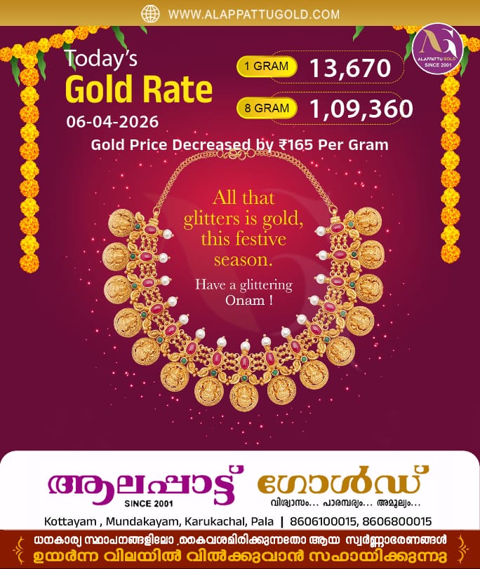 കേരളത്തില് ഇന്ന് സ്വര്ണവില കുറഞ്ഞു. 22 കാരറ്റ് ഒരു പവന് സ്വര്ണത്തിന് 1,09,360 രൂപയാണ് ഇന്നത്തെ വില. ഒരു ഗ്രാമിന് 13,670 രൂപയും. ഇന്നലത്തെ വിലയുമായി തട്ടിച്ച് നോക്കുമ്പോള് ഗ്രാമിന് 165 രൂപയുടെ കുറവാണ് ഉണ്ടായിരിക്കുന്നത്. പവന് 1320 രൂപയാണ് കുറഞ്ഞിരിക്കുന്നത്. 18 കാരറ്റ് സ്വര്ണത്തിന് പവന് 89,880 രൂപയും ഗ്രാമിന് 11,235 രൂപയുമാണ് ഇന്നത്തെ വില. ഗ്രാമിന് 135 രൂപയുടെ കുറവാണ് ഉണ്ടായിരിക്കുന്നത്.