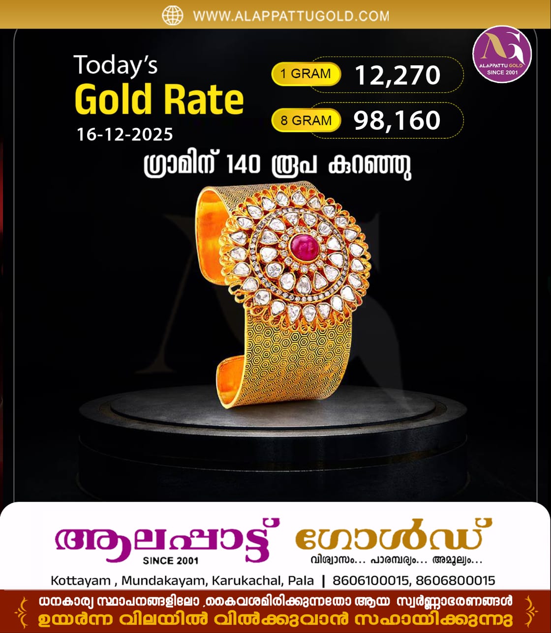 ഇന്നലെ രണ്ടു തവണകളായി ആയിരത്തിലധികം രൂപ വര്ധിച്ചതോടെയാണ് സ്വര്ണവില പുതിയ ഉയരം കുറിച്ചത്. ഇന്നലെ വൈകീട്ട് രേഖപ്പെടുത്തിയ 99,280 രൂപയാണ് സര്വകാല റെക്കോര്ഡ്. ഇന്ന് ഒരു ലക്ഷവും കടന്ന് സ്വര്ണവില കുതിക്കുമെന്ന് തോന്നിപ്പിച്ച ഘട്ടത്തിലാണ് ആയിരത്തിലധികം രൂപ കുറഞ്ഞത്.