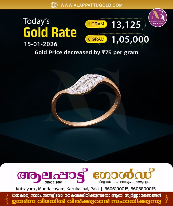 സംസ്ഥാനത്ത് റെക്കോര്ഡുകള് ഭേദിച്ച് കുതിക്കുന്ന സ്വര്ണവിലയില് ഇന്ന് ഇടിവ്. പവന് 600 രൂപയാണ് കുറഞ്ഞത്. 1,05,000 രൂപയാണ് ഒരു പവന് സ്വര്ണത്തിന്റെ വില. ഗ്രാമിന് ആനുപാതികമായി 75 രൂപയാണ് കുറഞ്ഞത്. 13,125 രൂപയാണ് ഒരു ഗ്രാം സ്വര്ണത്തിന്റെ വില.