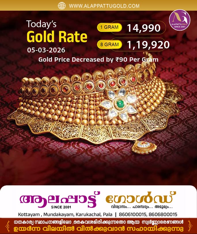 സംസ്ഥാനത്ത് സ്വര്‍ണവിലയില്‍ വീണ്ടും ഇടിവ്. ഇന്ന് പവന് 720 രൂപ കുറഞ്ഞതോടെ സ്വര്‍ണവില വീണ്ടും 1,20,000ല്‍ താഴെയെത്തി. 1,19,920 രൂപയാണ് ഒരു പവന്‍ സ്വര്‍ണത്തിന്റെ വില. ഗ്രാമിന് ആനുപാതികമായി 90 രൂപയാണ് കുറഞ്ഞത്. 14,990 രൂപയാണ് ഒരു ഗ്രാം സ്വര്‍ണത്തിന്റെ വില.
