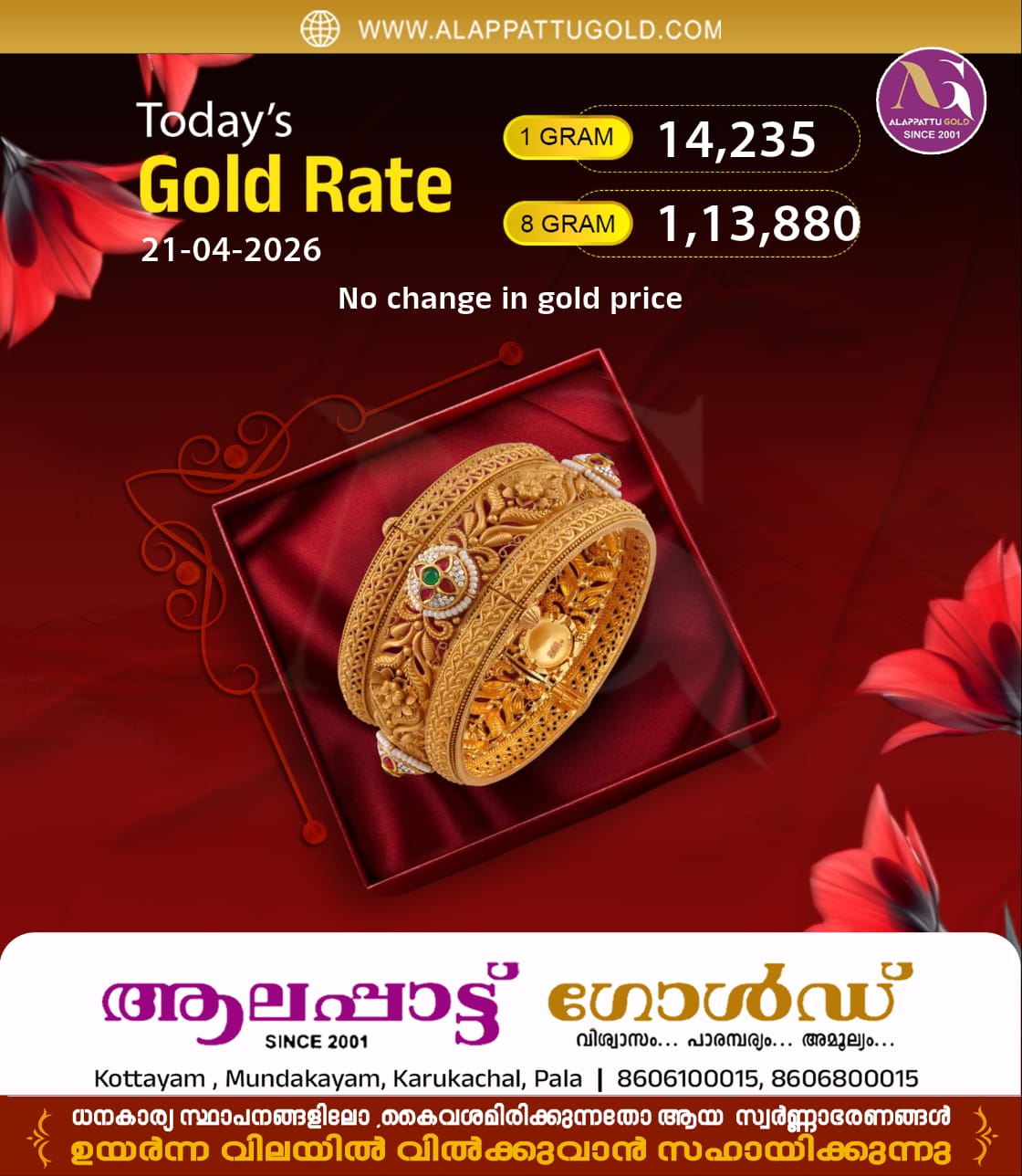 ഒരിടവേളയ്ക്ക് ശേഷം സംസ്ഥാനത്ത് സ്വര്‍ണവിലയില്‍ മാറ്റമില്ല. 1,13,880 രൂപയാണ് ഒരു പവന്‍ സ്വര്‍ണത്തിന്റെ വില. ഒരു ഗ്രാം സ്വര്‍ണത്തിന് 14,235 രൂപ നല്‍കണം. പണിക്കൂലിയും നികുതിയും കൂടി ചേര്‍ക്കുമ്പോള്‍ വില ഇനിയും ഉയരും.