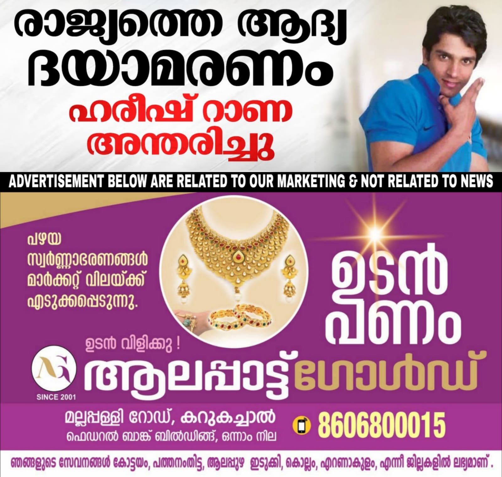 രാജ്യത്തെ ആദ്യത്തെ ഔദ്യോഗിക ദയാവധം യാഥാർത്ഥ്യമായി. ഹരീഷ് റാണ എന്ന യുവാവാണ് കോടതി ഉത്തരവിന്റെ പശ്ചാത്തലത്തിൽ ഡൽഹി എയിംസിൽ മരണത്തിന് കീഴടങ്ങിയത്. 13വർഷമായി അബോധാവസ്ഥയിൽ കഴിയുന്ന ഹരീഷ് റാണയുടെ വെന്റിലേറ്റർ സൗകര്യങ്ങൾ കഴിഞ്ഞ ദിവസം അധികൃതർ നീക്കം ചെയ്തിരുന്നു. ഇന്ത്യയുടെ നാളിതുവരെയുള്ള ചരിത്രത്തിൽ ആദ്യമായാണ് സുപ്രീം കോടതി ഒരാൾക്ക് ദയാവധത്തിന് അനുമതി നൽകുന്നത്. അന്തസ്സായി മരിക്കാനുള്ള അവകാശവും ഏത് പൗരനുമുണ്ടെന്ന് ചൂണ്ടികാണിച്ചാണ് കോടതിയുടെ ഉത്തരവ്.