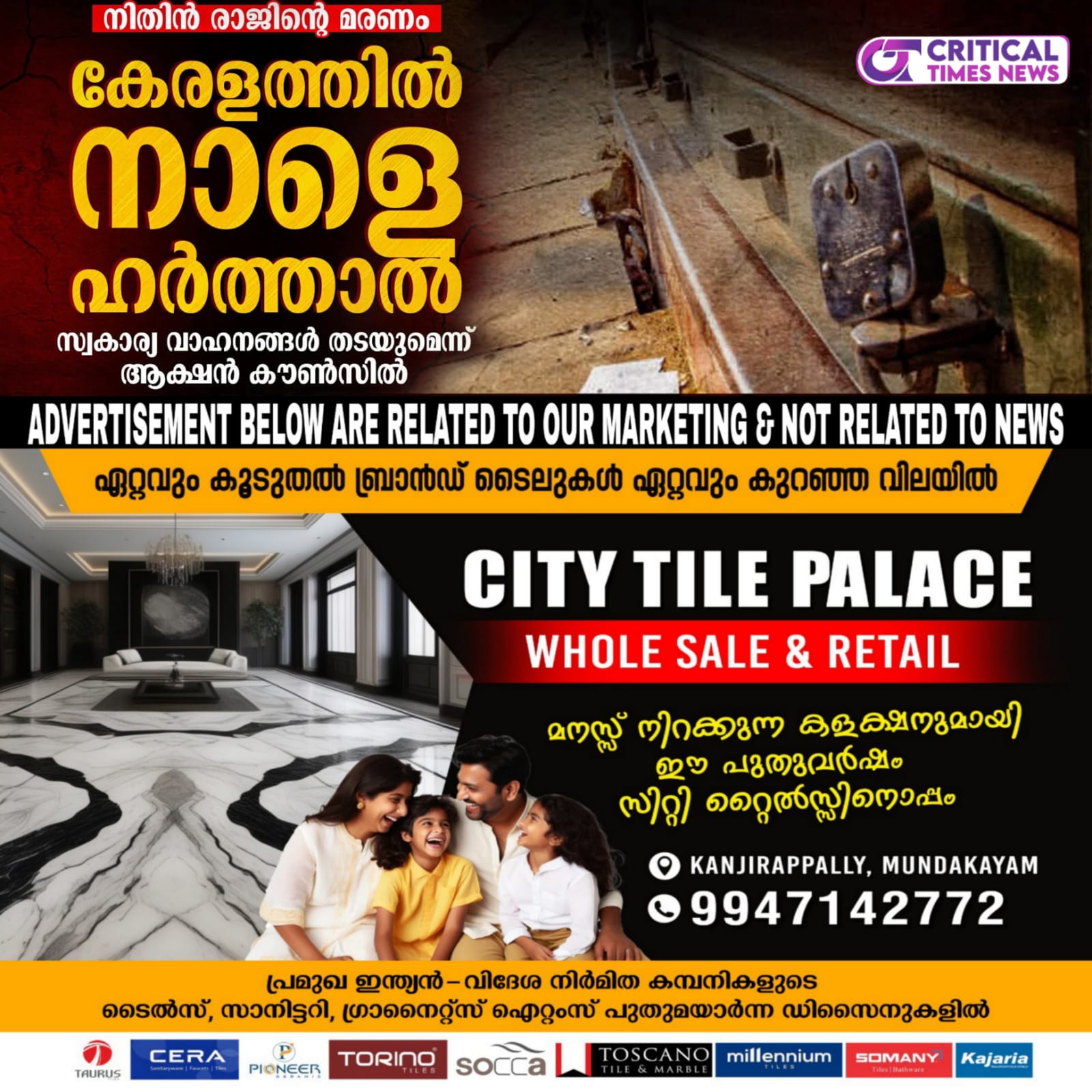 അഞ്ചരക്കണ്ടി ദന്തൽ കോളജ് വിദ്യാര്ഥി നിതിന് രാജിൻ്റെ മരണത്തില് കുറ്റക്കാര്ക്കെതിരെ നടപടി ആവശ്യപ്പെട്ട് സംസ്ഥാനത്ത് നാളെ (ഏപ്രിൽ 28, ചൊവ്വാഴ്ച) ഹർത്താൽ. ജസ്റ്റിസ് ഫോര് നിതിന് രാജ് ആക്ഷന് കൗണ്സിലും ദളിത് ആദിവാസി സംഘടനകളുമാണ് ഹർത്താൽ പ്രഖ്യാപിച്ചിരിക്കുന്നത്. ഹർത്താൽ ബന്ദായി മാറുമെന്നും എല്ലാവരും സഹകരിക്കണമെന്നും ആക്ഷന് കൗണ്സില് ഭാരവാഹികൾ പറഞ്ഞു.