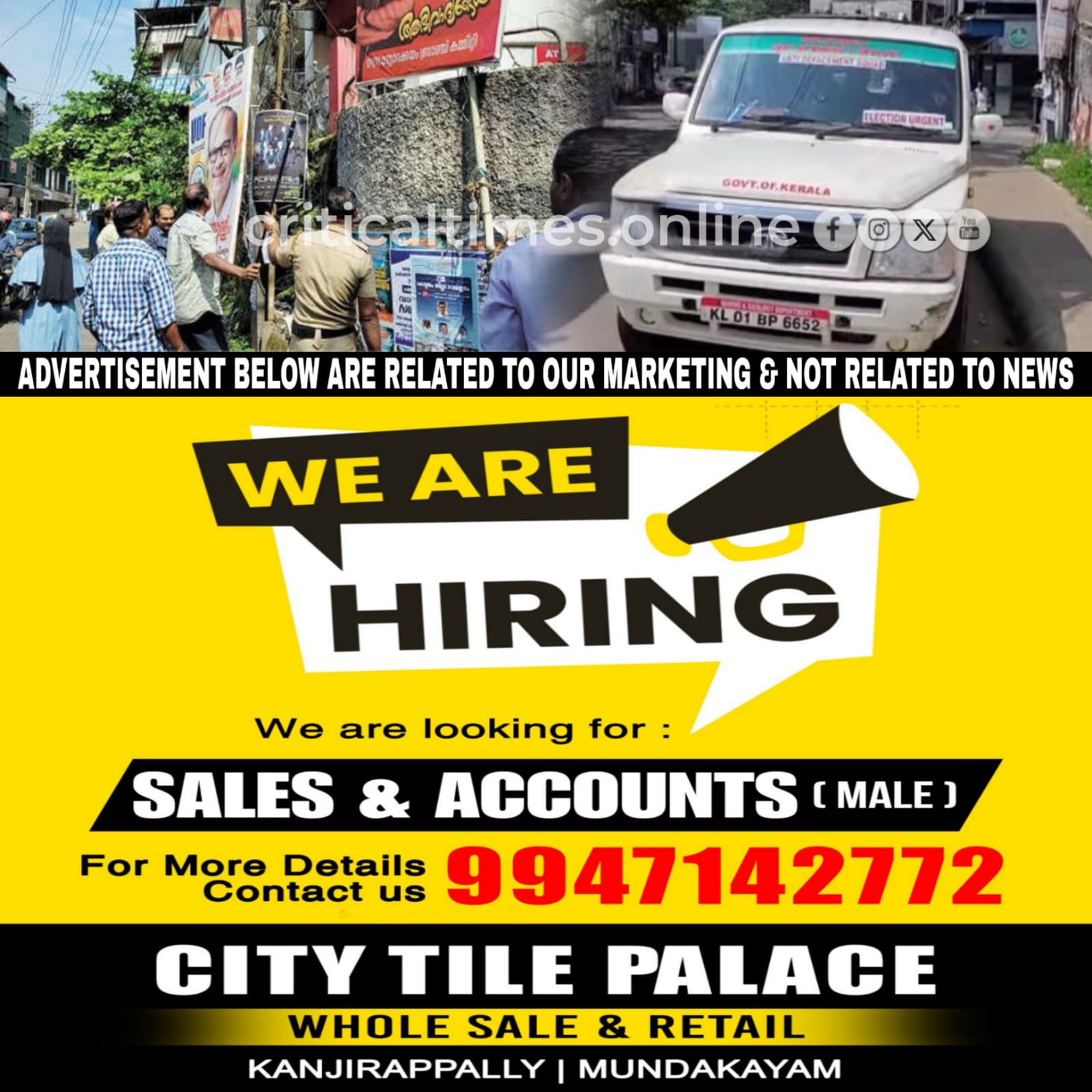 കാഞ്ഞിരപ്പള്ളി: താലൂക്കിൽ പൊതുയിടങ്ങളിൽ സ്ഥാപിച്ചിരിക്കുന്ന തിരഞ്ഞെടുപ്പ് പ്രചാരണ സാമഗ്രികൾ നീക്കംചെയ്തുതുടങ്ങി. ആന്റി ഡിഫേയ്സ്മെന്റ് സ്ക്വാഡാണ് അനധികൃതമായും നിയമവിരുദ്ധമായും സ്ഥാപിച്ചിരിക്കുന്ന ഫ്ളെക്സ്, പോസ്റ്റർ എന്നിവ നീക്കംചെയ്യുന്നത്.