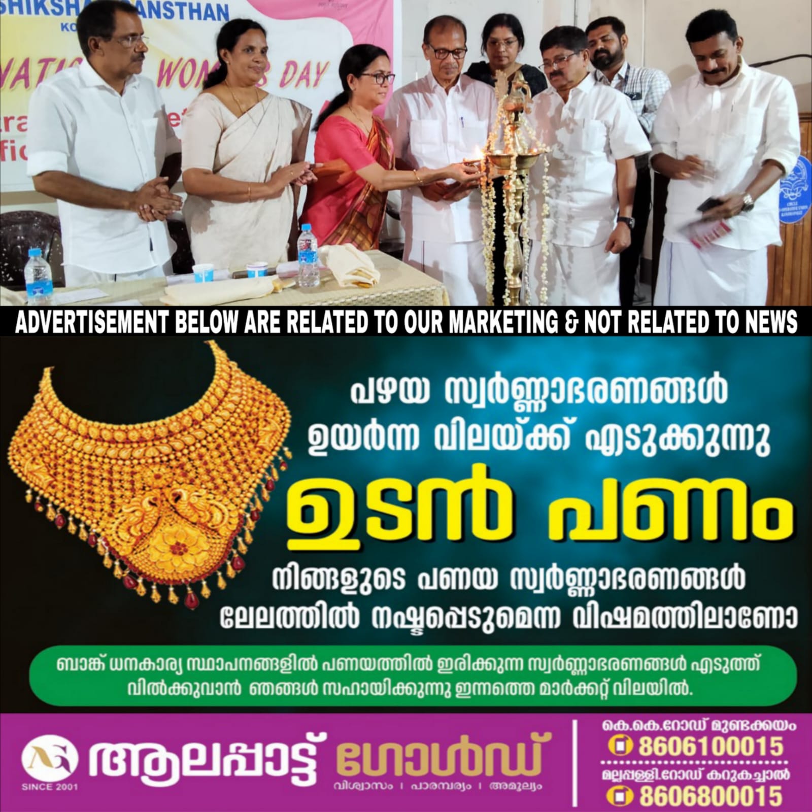 കാഞ്ഞിരപ്പള്ളി: കേന്ദ്ര സർക്കാരിൻ്റെ നൈപുണ്യ വികസന മന്ത്രാലയത്തിന്റെ കീഴിൽ കോട്ടയത്ത് പ്രവർത്തിച്ചു വരുന്ന ജൻ ശിക്ഷൻ സൻസ്ഥാൻ ജില്ലാ കമ്മറ്റിയുടെ നേതൃത്വത്തിൽ ദേശീയ വനിതാ ദിനാഘോഷം നടത്തി. ജില്ലാ ഡയറക്ടർ മിനി ജോണിന്റെ അധ്യക്ഷതയിൽ ജില്ലാ പഞ്ചായത്തംഗം തോമസ് കുന്നപ്പള്ളി ഉദ്ഘാടനം ചെയ്തു. ജില്ലാ ചെയർമാൻ അഡ്വ.പി.എ.സലിം, ബ്ലോക്ക് പഞ്ചായത്ത് പ്രസിഡൻ്റ് അഡ്വ. പി.എ. ഷെമീർ, ഗ്രാമപഞ്ചായത്ത് പ്രസിഡൻ്റ് സുനി ജോസഫ്, ജെസി ഷാജൻ,നോ ബിൾ.എം. ജോർജ്,ബിജി ജോസഫ്, എന്നിവർ പ്രസംഗിച്ചു.