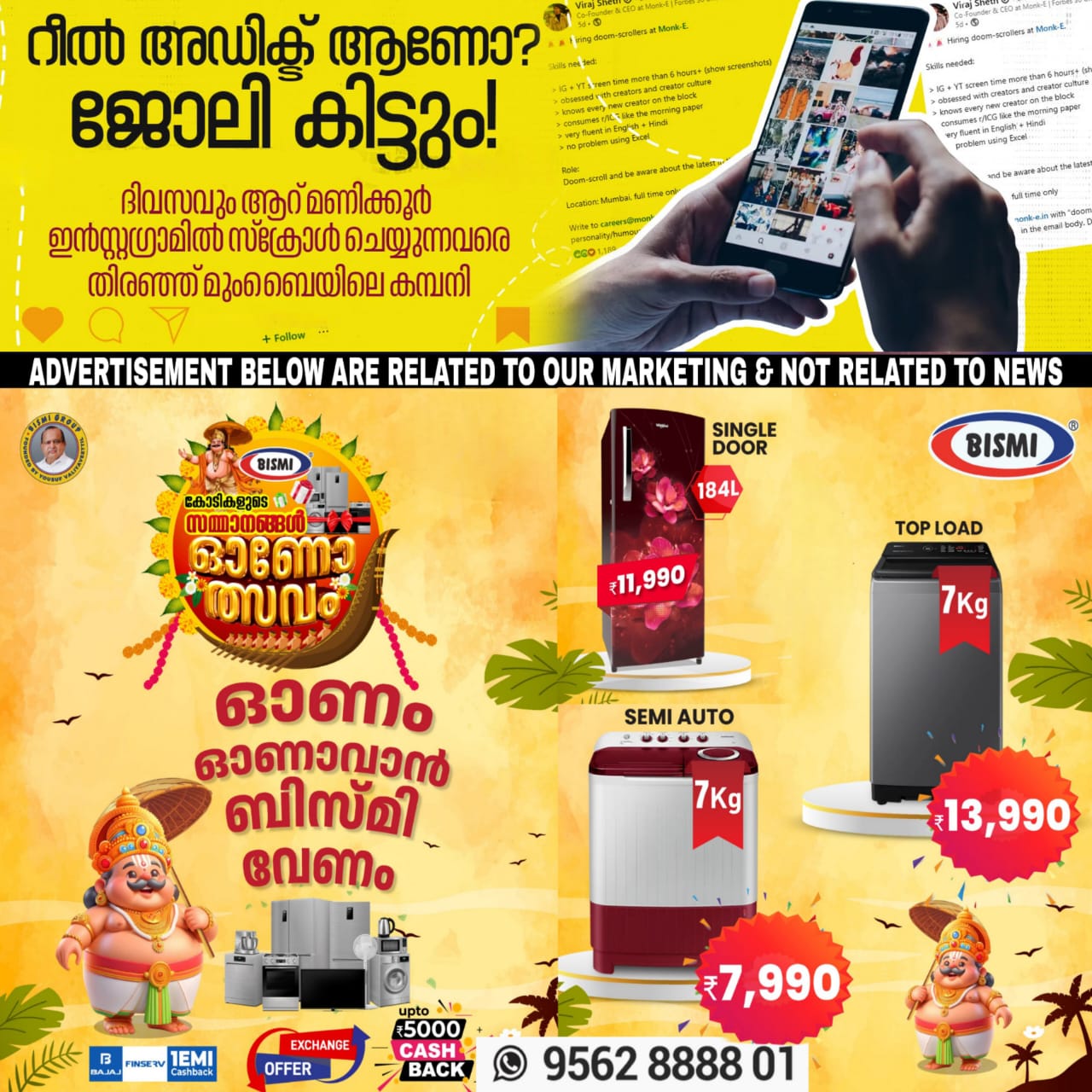 ദിവസത്തിൽ എത്ര മണിക്കൂറുകൾ നിങ്ങൾ ഓൺലൈനിൽ ചെലവഴിക്കും? കണക്കേ ഉണ്ടാവില്ല അല്ലേ? മിക്കവാറും സോഷ്യൽ മീഡിയയിൽ സ്ക്രോൾ ചെയ്തു കൊണ്ടേയിരിക്കുന്നവരായിരിക്കും നമ്മിൽ പലരും. എന്തായാലും, ഈ മുംബൈ സിഇഒ ഒരു ‘ഡൂം സ്ക്രോളറെ’ അന്വേഷിച്ച് കൊണ്ടിരിക്കുകയാണ്. അതായത്, ദിവസം ആറ് മണിക്കൂർ ഇൻസ്റ്റഗ്രാമിൽ സ്ക്രോൾ ചെയ്തുകൊണ്ടിരിക്കുന്ന ഒരാളെ. മോങ്ക് എന്റർടൈൻമെന്റാണ് പലരും സ്വപ്നമായി കാണുന്ന ഈ ജോലിയിലേക്ക് ഒഴിവുണ്ട് എന്ന് പറഞ്ഞിരിക്കുന്നത്.