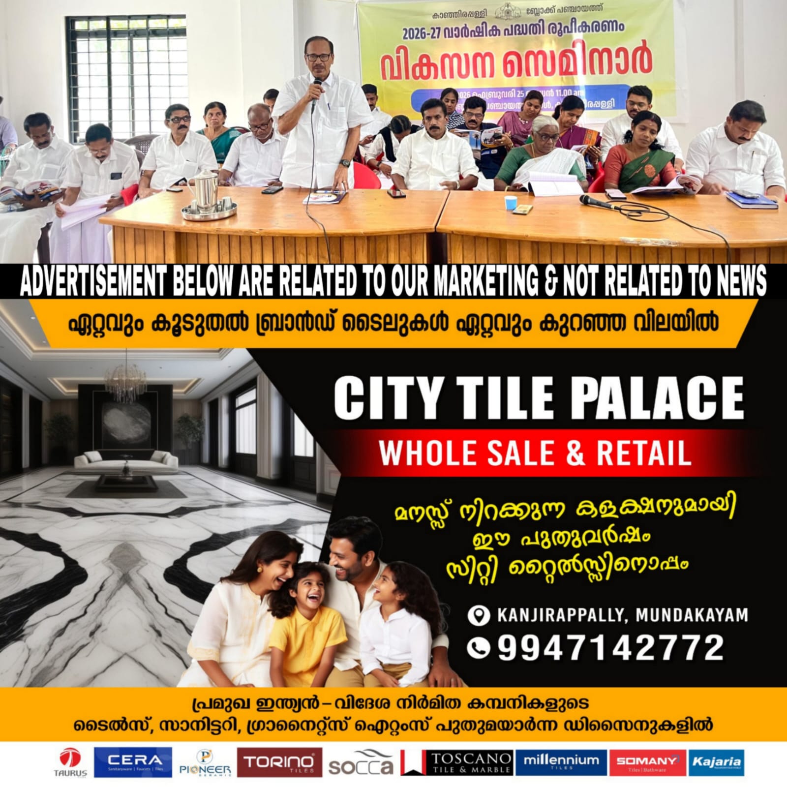 കാഞ്ഞിരപ്പള്ളി: ബ്ലോക്ക് പഞ്ചായത്ത് 2026 – 27 വാർഷിക പദ്ധതി രൂപീകരണവുമായി ബന്ധപ്പെട്ട് നടത്തിയ വികസന സെമിനാർ പ്രസിഡൻ്റ് അഡ്വ.പി.എ.ഷെമീറിൻ്റെ അധ്യക്ഷതയിൽ ജില്ലാ പഞ്ചായത്തംഗം തോമസ് കുന്നപ്പള്ളി ഉദ്ഘാടനം ചെയ്തു. ബ്ലോക്ക് പഞ്ചായത്ത് വൈസ് പ്രസിഡൻ്റ് റോസമ്മ ആഗസ്തി, സ്ഥിരം സമിതി അധ്യക്ഷന്മാരായ ബിനു മറ്റക്കര, വി.ടി അയൂബ്ഖാൻ, സിനിമോൾ തടത്തിൽ,