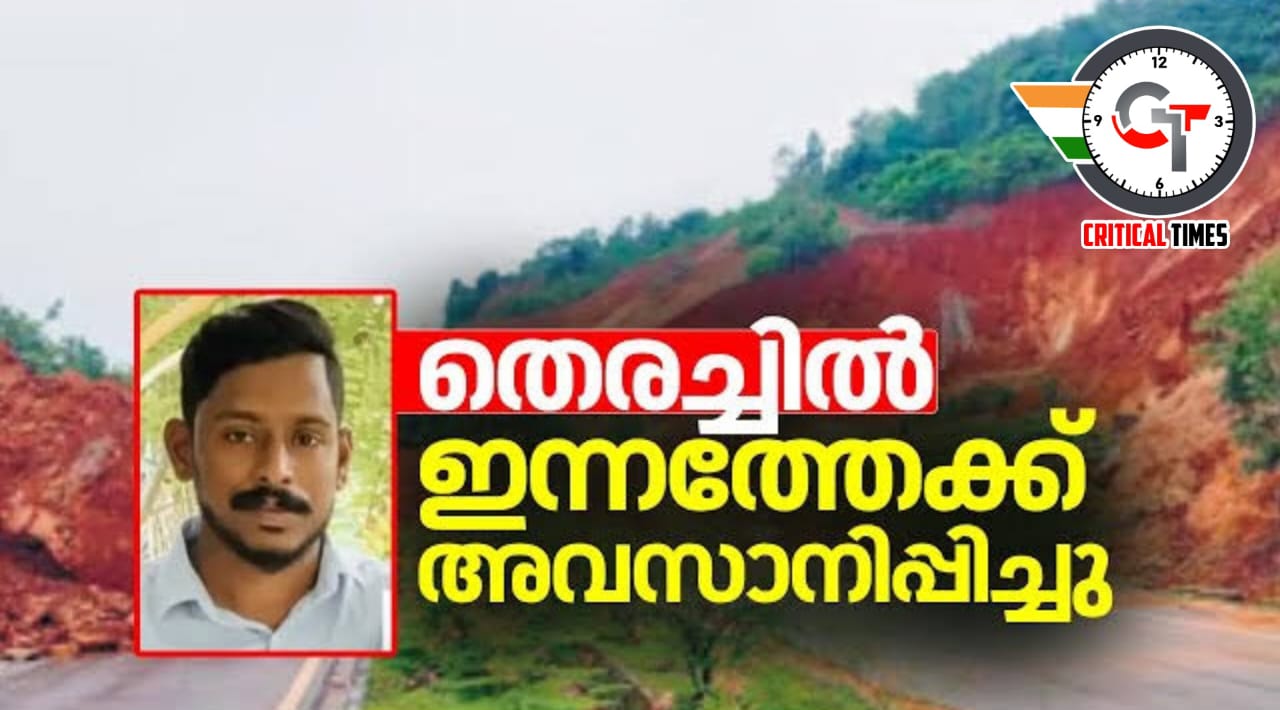 അങ്കോല: കർണാടക ഷിരൂരിൽ മണ്ണിടിഞ്ഞ് കാണാതായ കോഴിക്കോട് സ്വദേശിഅർജുന്വേണ്ടിയുള്ള ശനിയാഴ്ചത്തെ തിരച്ചിൽ അവസാനിപ്പിച്ചു. മോശം കാലാവസ്ഥയെത്തുടർന്നാണ് തിരച്ചിൽ അവസാനിപ്പിച്ചത്.