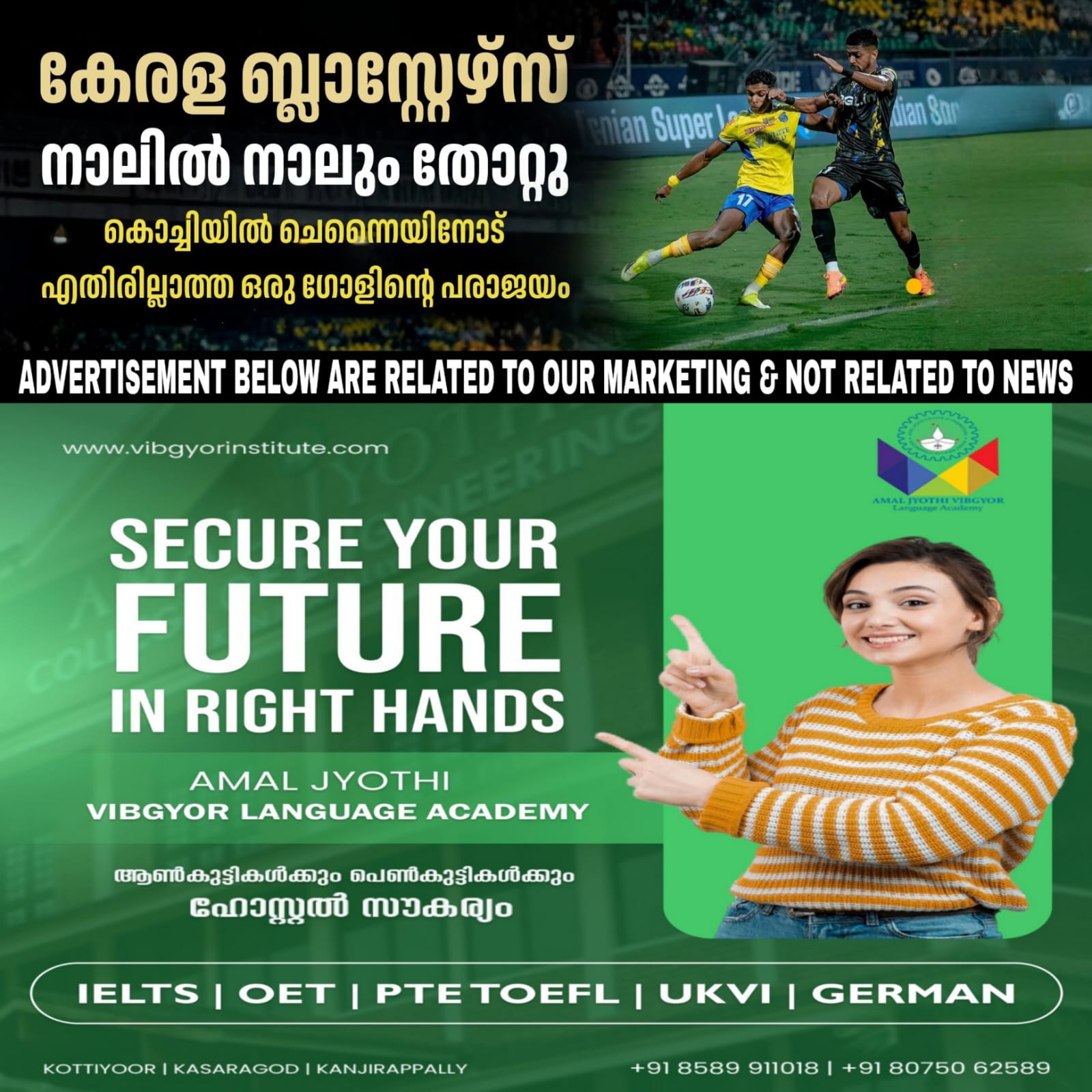 എസ്.എല്ലിൽ കേരള ബ്ലാസ്റ്റേഴ്സിന് തുടർച്ചയായ നാലാം മത്സരത്തിലും തോൽവി. കലൂർ ജവഹർലാൽ നെഹ്റു സ്റ്റേഡിയത്തിൽ നടന്ന മത്സരത്തിൽ എതിരില്ലാത്ത ഒരു ഗോളിന് ചെന്നൈയിൻ എഫ്.സിയാണ് മഞ്ഞപ്പടയെ വീഴ്ത്തിയത്. ഈ സീസണിൽ നടന്ന മൂന്ന് ഹോം മാച്ചുകളിലും ഇതോടെ ബ്ലാസ്റ്റേഴ്സിന് തോൽവിയായി.