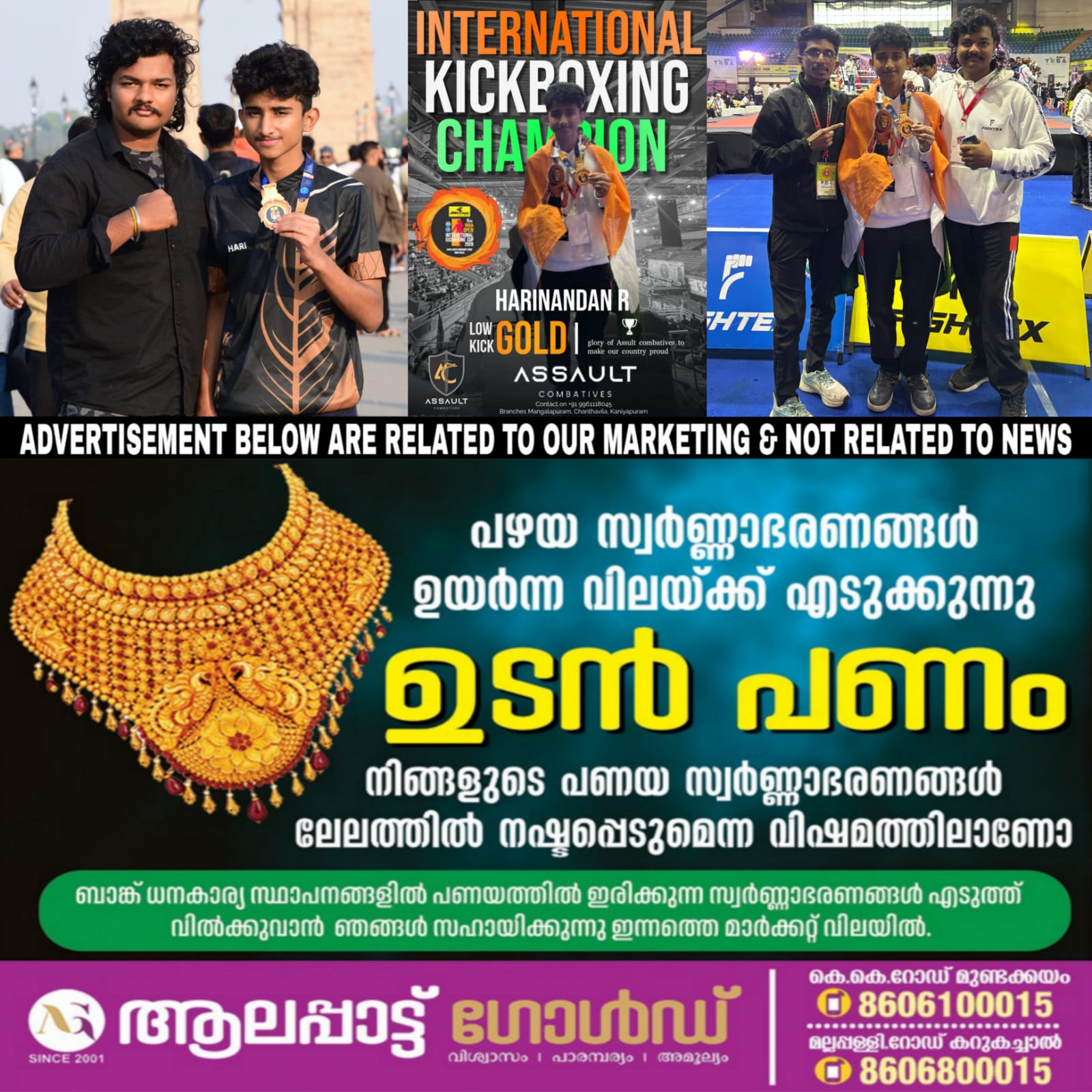 ന്യൂഡൽഹി: അന്താരാഷ്ട്ര കിക്ക്ബോക്സിംഗ് മത്സരത്തിൽ റിംഗിൽ ഇന്ത്യയുടെ യശസ്സുയർത്തി തിരുവനന്തപുരം ഒമ്പതാം ക്ലാസ് വിദ്യാർത്ഥി ഹരിനന്ദൻ ആർ ഉണ്ണിത്താൻ. ന്യൂഡൽഹിയിൽ നടന്ന അഞ്ചാമത് വാക്കോ (WAKO) ഇന്ത്യ ഓപ്പൺ ഇന്റർനാഷണൽ കിക്ക്ബോക്സിംഗ് കപ്പ് 2026 ൽ ഹരിനന്ദന് സ്വർണ്ണമെഡൽ കരസ്ഥമാക്കി.