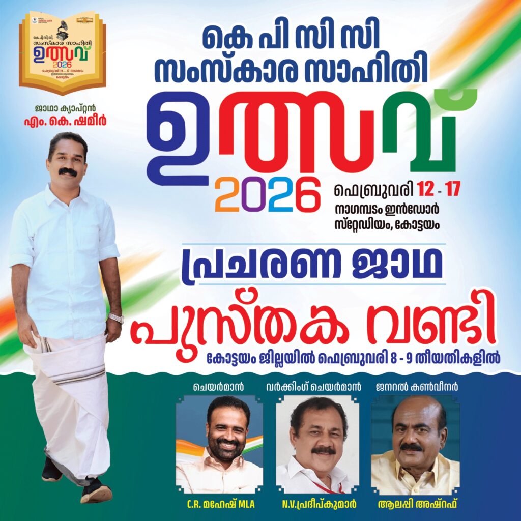 കാഞ്ഞിരപ്പള്ളി: കെപിസിസി സംസ്കാര സഹിതി സംസ്ഥാന കമ്മിറ്റിയുടെ ആഭിമുഖ്യത്തിൽ 2026 ഫെബ്രുവരി 12 മുതൽ 17 വരെ കോട്ടയത്തു വെച്ചു നടത്തപ്പെടുന്ന “ഉത്സവ് 2026” പരിപാടിയുടെ പ്രചരനാർത്ഥം സംസ്കാര സാഹിതി സ്വാഗത സംഘം കമ്മിറ്റിയുടെ നേതൃത്വത്തിൽ പുസ്തക വണ്ടി ഫെബ്രുവരി 9-10 തീയതികളിൽ കോട്ടയം ജില്ലയിലെ എല്ലാ നിയോജക മണ്ഡലങ്ങളിൽ പര്യടനം നടത്തി.