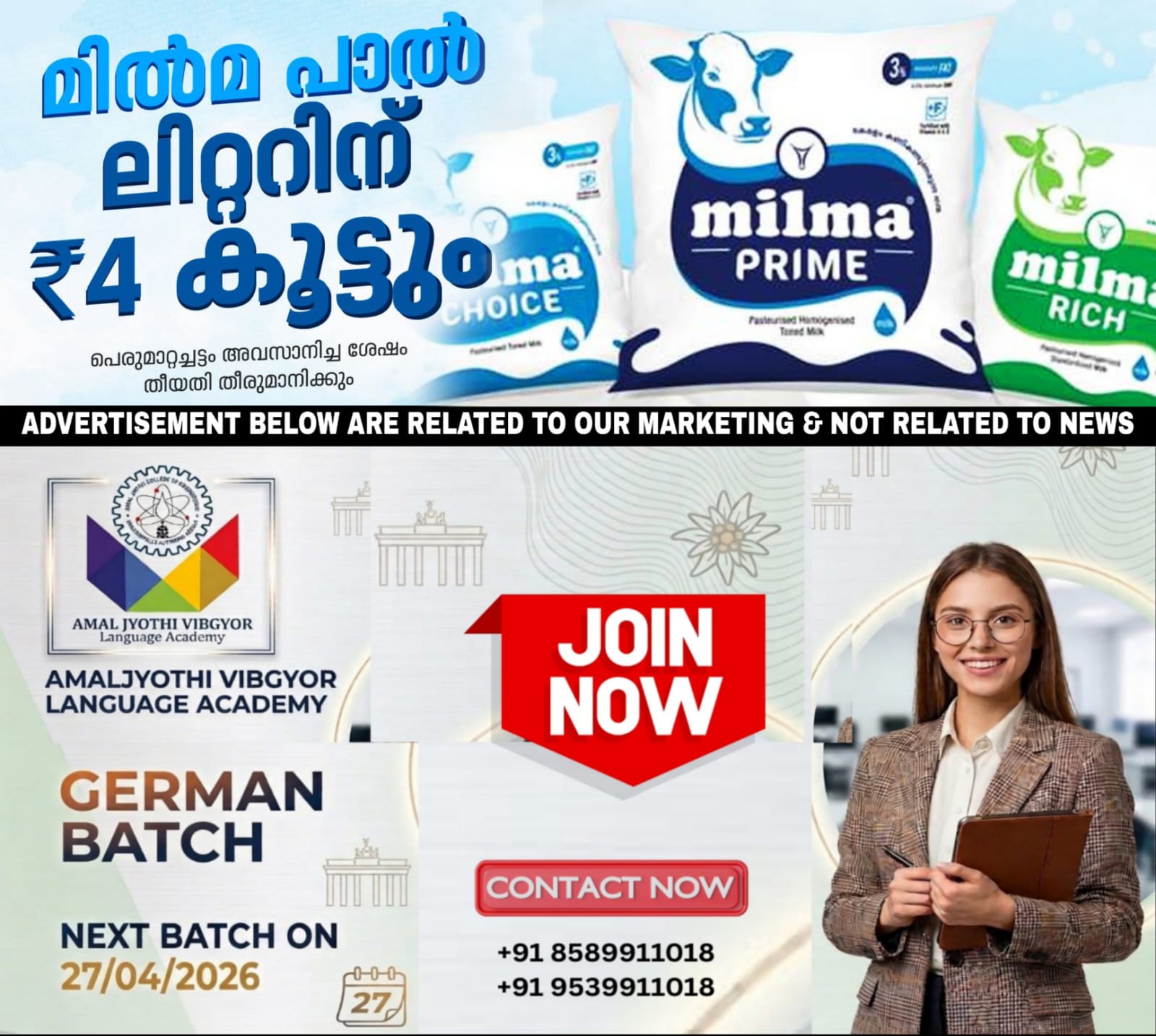മിൽമ പാലിന് ലീറ്ററിന് നാല് രൂപ വീതം കൂട്ടാൻ മിൽമയ്ക്ക് സർക്കാരിന്‍റെ അനുമതി ലഭിച്ചെങ്കിലും പെരുമാറ്റച്ചട്ടം നിലനിൽക്കുന്നതിനാൽ തിരഞ്ഞെടുപ്പ് കമ്മീഷന്‍റെ അനുമതി ലഭിച്ചിട്ടില്ല. പാൽവില വർധന ആറ് മാസം മുൻപ് തീരുമാനിച്ചതാണെന്നും തിരഞ്ഞെടുപ്പ് കമ്മീഷന്‍റെ അനുമതി ലഭിക്കുന്ന മുറയ്ക്ക് നടപ്പാക്കുമെന്നും മിൽമ ചെയർമാൻ കെ.എസ്.മണി നേരത്തെ പറഞ്ഞിരുന്നു.