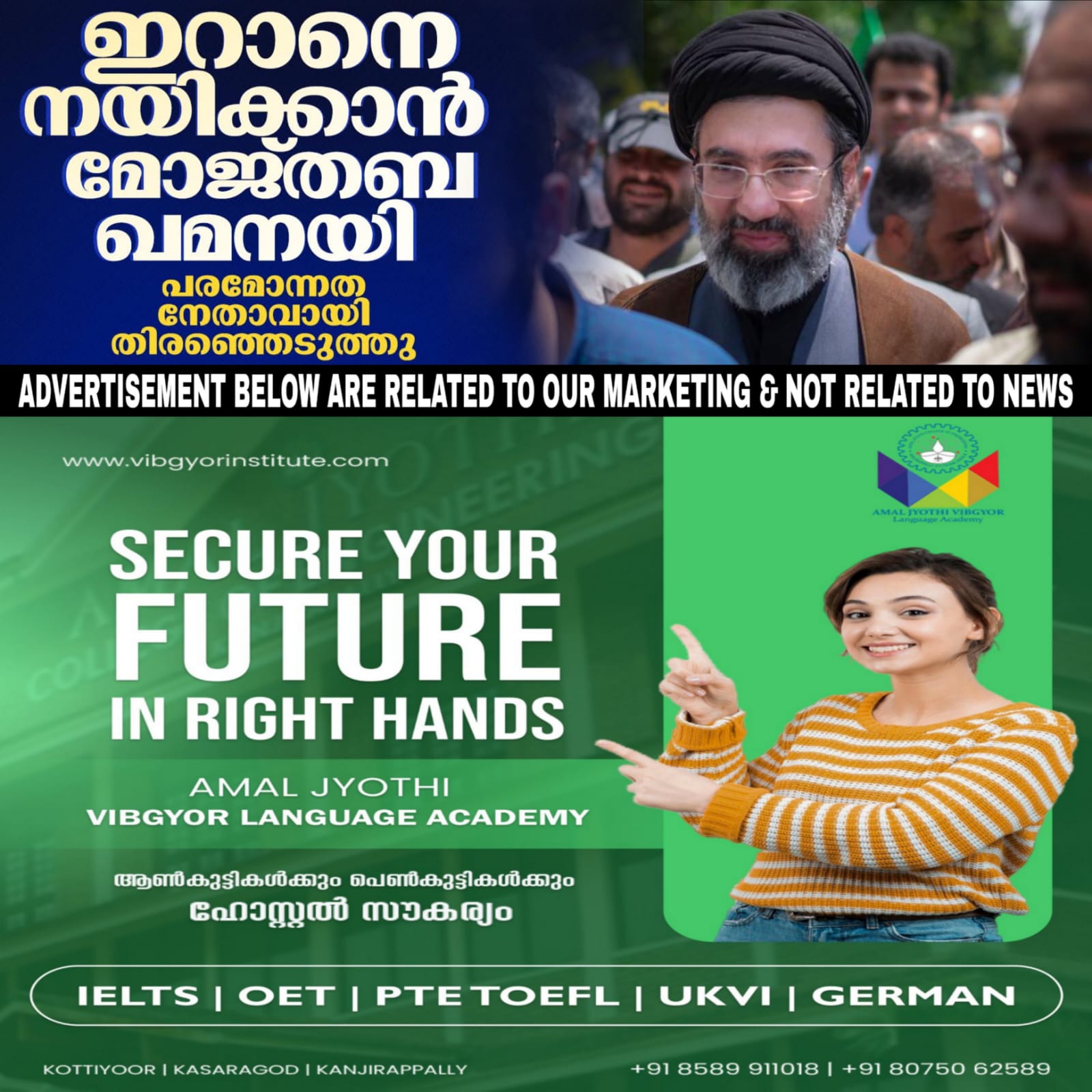ഇറാന്റെ പുതിയ പരമോന്നത നേതാവായി മുജ്തബ ഖമേനിയെ തെരഞ്ഞെടുത്തു. മുന്‍ നേതാവ് ആയത്തുല്ല അലി ഖമേനിയുടെ രണ്ടാമത്തെ മകനാണ് മുജ്തബ ഹുസൈനി ഖമേനി. ഇറാനിലെ പണ്ഡിത സഭയാണ് പുതിയ പരമോന്നത നേതാവിനെ തെരഞ്ഞെടുത്തത്. ടെഹ്റാന്‍ സമയം അര്‍ധരാത്രിയോടെയാണ് പുതിയ പരമോന്നത സുപ്രധാന പ്രഖ്യാപനം ഉണ്ടായത്. പരമോന്നത നേതാവിനെ തെരഞ്ഞെടുക്കുന്നതിനുള്ള 88 അംഗ സമിതിയാണ് മുജതബയെ ആയത്തുള്ള അലി ഖമേനിയുടെ പിന്‍ഗാമിയായി പ്രഖ്യാപിച്ചത്.