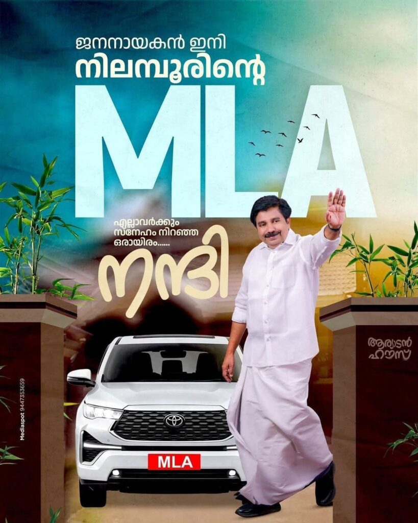 ഏറെ വാശിയേറിയ നിയമസഭ ഉപതെരഞ്ഞെടുപ്പിൽ നിലമ്പൂർ തിരിച്ചു പിടിച്ച യു.ഡി.എഫ് സ്ഥാനാർഥി ആര്യാടൻ ഷൗക്കത്ത് തിളക്കമാർന്ന വിജയമാണ് കൈവരിച്ചത്. 11,432 വോട്ടിന്റെ ഭൂരിപക്ഷത്തിൽ ആര്യാടൻ ഷൗക്കത്ത് എൽ.ഡി.എഫ് സ്ഥാനാർഥി എം. സ്വരാജിനെ പരാജയപ്പെടുത്തിയത്. ആര്യാടൻ ഷൗക്കത്ത് 76,493 വോട്ടും സ്വരാജ് 65,061 വോട്ടും പിടിച്ചു.