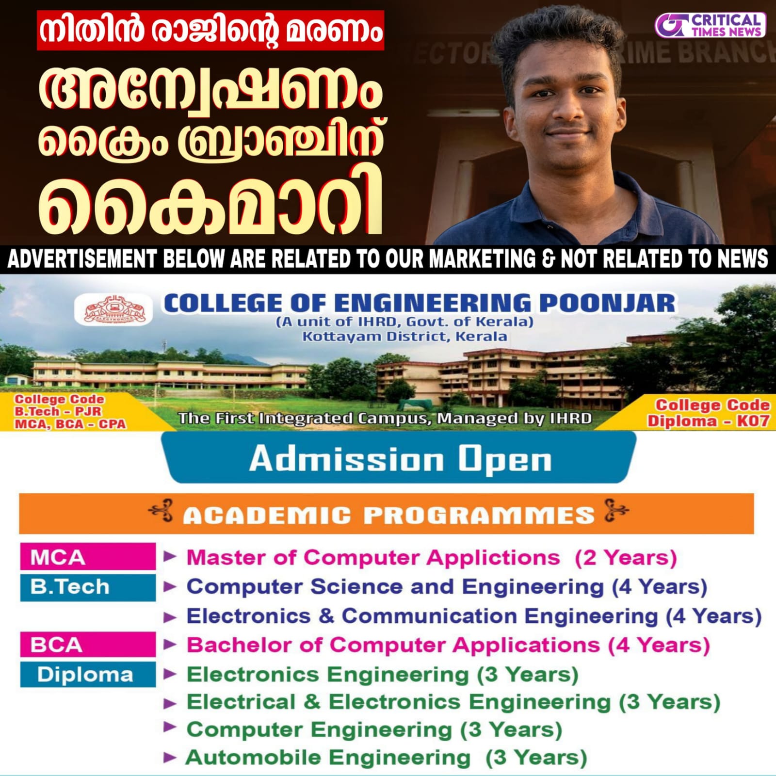 കണ്ണൂര്‍ അഞ്ചരക്കണ്ടിയിലെ കണ്ണൂർ ഡെന്റൽ കോളേജിലെ ബിഡിഎസ് വിദ്യാർത്ഥി നിതിൻ രാജിന്റെ മരണത്തിൽ അന്വേഷണം സംസ്ഥാന ക്രൈംബ്രാഞ്ചിന് കൈമാറി. കണ്ണൂർ സിറ്റി പൊലീസ് കമ്മീഷണറുടെ ശുപാർശ പ്രകാരം ഡിജിപിയാണ് ഇത് സംബന്ധിച്ച ഉത്തരവിറക്കിയത്. കുടുംബത്തിന്റെ പരാതിയും ലോൺ ആപ്പ് കേസും ക്രൈംബ്രാഞ്ച് അന്വേഷിക്കും.