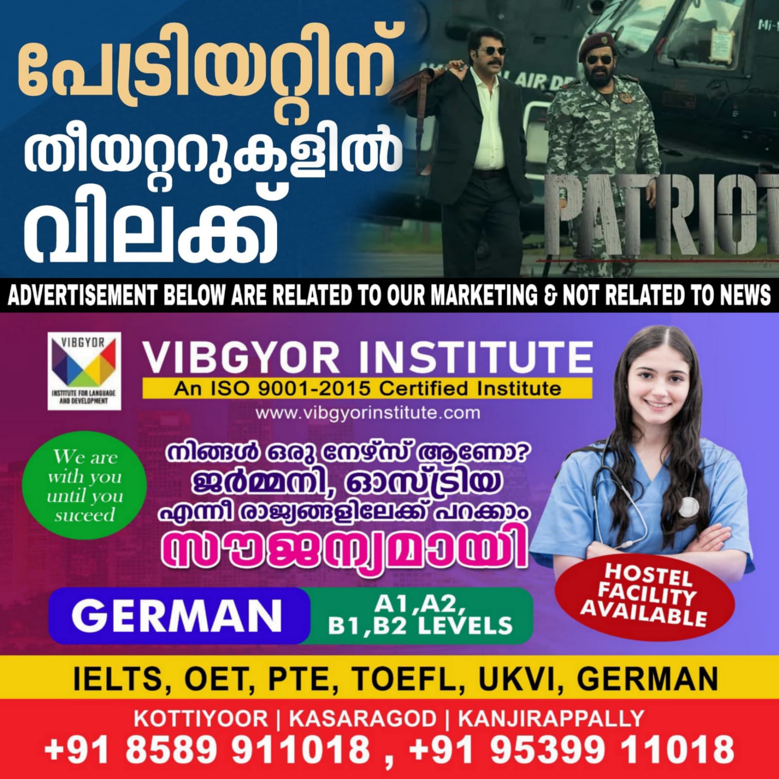 ഒരിടവേളയ്ക്ക് ശേഷം മമ്മൂട്ടിയും മോഹൻലാലും ഒന്നിക്കുന്ന പേട്രിയറ്റ് സിനിമയ്ക്ക് വിലക്കുമായി തിയറ്റര് ഉടമകളുടെ സംഘടനയായ ഫിയോക്ക്. തിയറ്ററിൽ നിന്നുള്ള നിർമാണ-വിതരണ വിഹിതം കൂട്ടിചോദിച്ചതിനാണ് വിലക്ക്. ചിത്രവുമായി കരാർ വയ്ക്കരുതെന്ന് തിയറ്ററുകൾക്ക് ഫിയോക് നിർദേശം നല്കിയിട്ടുണ്ട്. ഏപ്രിൽ 23നാണ് ചിത്രത്തിന്റെ റിലീസ് പ്രഖ്യാപിച്ചിരിക്കുന്നത്.