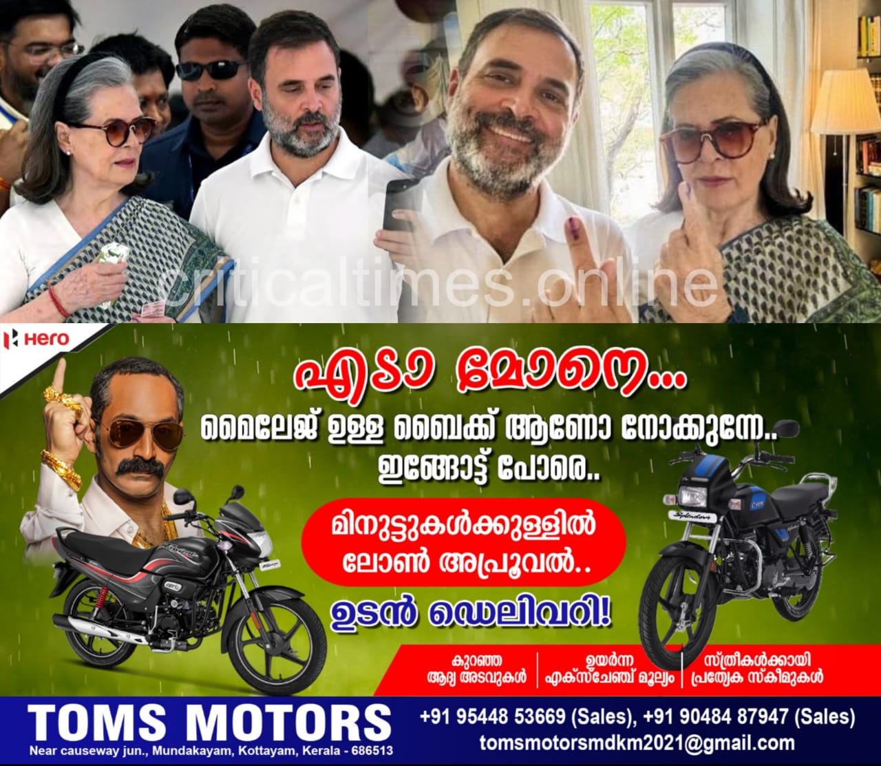 സോണിയയും രാഹുലും ഒന്നിച്ചാണ് നിർമ്മാൺ ഭവനിലെ പോളിംഗ് ബൂത്തിലെത്തിയത്. വോട്ട് രേഖപ്പെടുത്തിയ ശേഷം പുറത്തെത്തിയ ഇരുവരും ചേർന്ന് സെൽഫിയെടുക്കുകയും ചെയ്തു. ‘ജനാധിപത്യത്തിന്റെ ഈ വലിയ ഉത്സവത്തിലേക്ക് ഞാനും അമ്മയും വോട്ടുകൾ രേഖപ്പെടുത്തി സംഭാവന ചെയ്തു. എല്ലാവരും വീടുകളിൽ നിന്ന് പുറത്തിറങ്ങി നിങ്ങളുടെ അവകാശങ്ങൾക്കും കുടുംബത്തിന്റെ ഭാവിക്കും വേണ്ടി വോട്ട് രേഖപ്പെടുത്തണം’- ഡൽഹിയിലെ വോട്ടർമാരോട് രാഹുൽ പറഞ്ഞു. വോട്ട് ചെയ്ത ശേഷമുള്ള സെൽഫി പങ്കുവച്ചാണ് രാഹുൽ എക്സിൽ ഹിന്ദിയിൽ കുറിപ്പ് പങ്കുവച്ചത്.