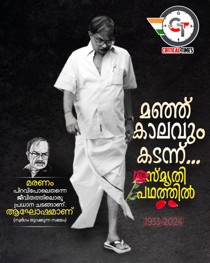 എം ടിയിലാത്ത ലോകത്ത് ജീവിക്കാൻ ഇനി നമ്മൾ ശീലിക്കുകയാണ്. കോഴിക്കോട്ടെ സിതാരയെന്ന വീട്ടിലെ കസേരയിൽ ഗൗരവത്തോടെ ഇരിക്കുന്ന എം ടി കാഴ്ച മലയാളത്തിന് നഷ്ടം. ഒരുകാലത്തെ മുഴുവൻ സർഗസമ്പന്നമാക്കിയ അതുല്യജീവിതം, ഇനി ഓർമ്മ മാത്രം. എം ടിയുടെ ആഗ്രഹപ്രകാരം പൊതുദർശനം ഒഴിവാക്കിയിരുന്നു. എന്നിട്ടും കൊട്ടാരം റോഡിൽ എം ടിയെ കാണാൻ ആയിരങ്ങൾ കാത്തുനിന്നു.
