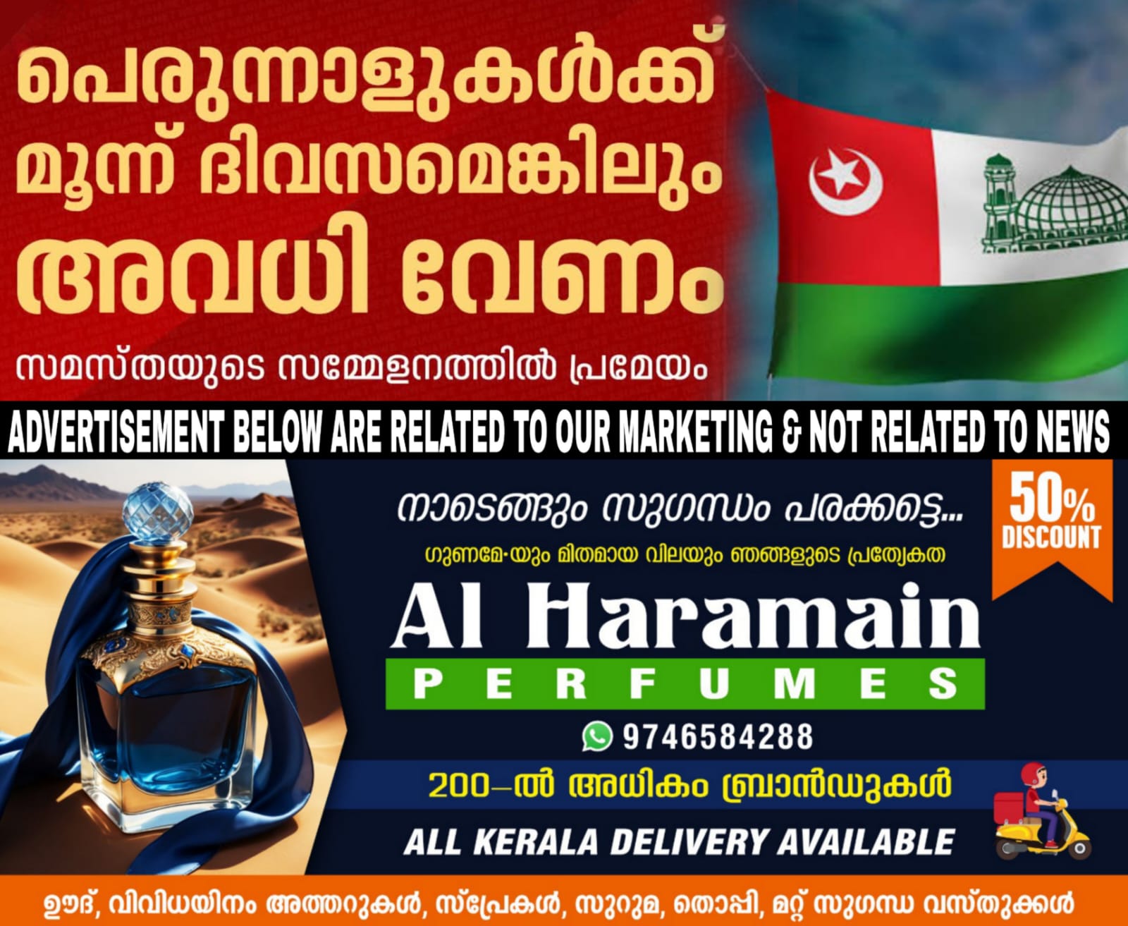 പെരുന്നാളുകൾക്ക് മൂന്ന് ദിവസത്തെ ഔദ്യോഗിക അവധി അനുവദിക്കണമെന്ന് ആവശ്യപ്പെട്ട് സമസ്ത. രണ്ട് പെരുന്നാളുകൾക്കും ചുരുങ്ങിയത് മൂന്ന് ദിവസത്തെ ഔദ്യോഗിക അവധി വീതം പ്രഖ്യാപിക്കാൻ സർക്കാർ തയ്യാറാകണം എന്നാണ് സമസ്തയുടെ ആവശ്യം. നൂറാം വാർഷിക സമ്മേളന പ്രമേയത്തിലൂടെയാണ് സമസ്ത ആവശ്യം ഉന്നയിച്ചത്. ജുമുഅ നമസ്കാരത്തിന് തടസ്സമാകാത്ത രീതിയിൽ പരീക്ഷാ സമയം നിശ്ചയിക്കണമെന്നും സമസ്ത ആവശ്യപ്പെടുന്നു.