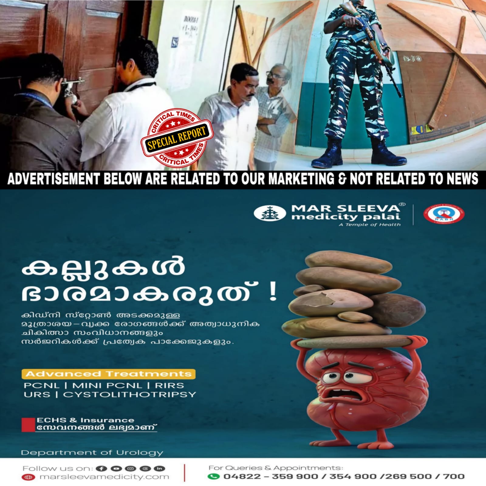 കോട്ടയം: വോട്ടിങ് യന്ത്രങ്ങൾ സൂക്ഷിക്കുന്ന സ്ട്രോങ്ങ് റൂമിന്റെ സുരക്ഷാ ചട്ടങ്ങളെച്ചൊല്ലിയുണ്ടായ തർക്കത്തെത്തുടർന്ന് കോട്ടയത്ത് തിരഞ്ഞെടുപ്പ് ഉദ്യോഗസ്ഥർക്ക് നേരെ സി.ഐ.എസ്.എഫ് സൈനികർ തോക്ക് ചൂണ്ടി. വൈക്കം മണ്ഡലത്തിലെ വോട്ടിങ് മെഷീനുകൾ സൂക്ഷിച്ചിരിക്കുന്ന കോട്ടയം ബസേലിയസ് കോളേജിലാണ് സംഭവം. സ്ട്രോങ് റൂമിന്റെ താക്കോൽ പൂട്ടിനൊപ്പംവെച്ച് സീൽചെയ്യണമെന്ന കേന്ദ്ര നിരീക്ഷകന്റെ ആവശ്യം തിരഞ്ഞെടുപ്പ് ഉദ്യോഗസ്ഥൻ അനുസരിക്കാതിരുന്നതാണ് പ്രശ്നങ്ങൾക്കിടയാക്കിയത്.