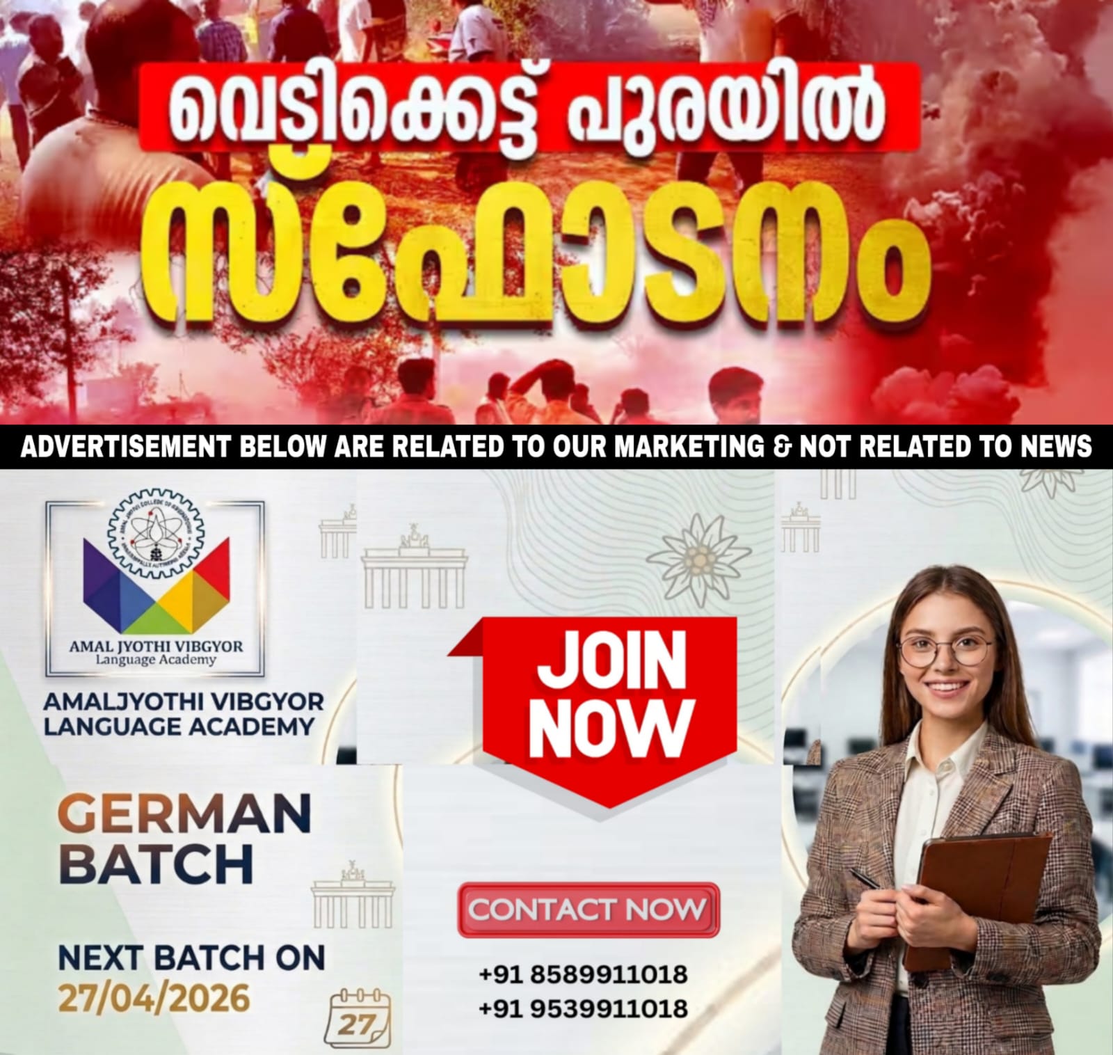 തൃശൂർ പൂരത്തിൽ തിരുവമ്പാടി വിഭാഗത്തിന്റെ വെടിക്കെട്ട് ഒരുക്കുന്ന മുണ്ടത്തിക്കോടുള്ള പടക്ക നിർമാണ കേന്ദ്രത്തിൽ സ്ഫോടനം. മൂന്ന് മരണം. നാൽപതോളം തെഴിലാളികൾക്ക് പൊള്ളലേറ്റതായാണ് വിവരം. രക്ഷാപ്രവർത്തനത്തിനിടെയും സ്ഫോടനം ഉണ്ടായി. പരുക്കേറ്റവരെ തൃശൂർ മെഡിക്കൽ കോളജ് ആശുപത്രിയിലേക്ക് മാറ്റി . അഞ്ചുപേരുടെ നില ഗുരുതരമാണെന്നാണ് വിവരം. വലിയ സ്ഫോടന ശബ്ദം കിലോമീറ്ററുകൾക്കിപ്പുറവും കേട്ടതായി ദൃക്സാക്ഷികൾ പറയുന്നു.