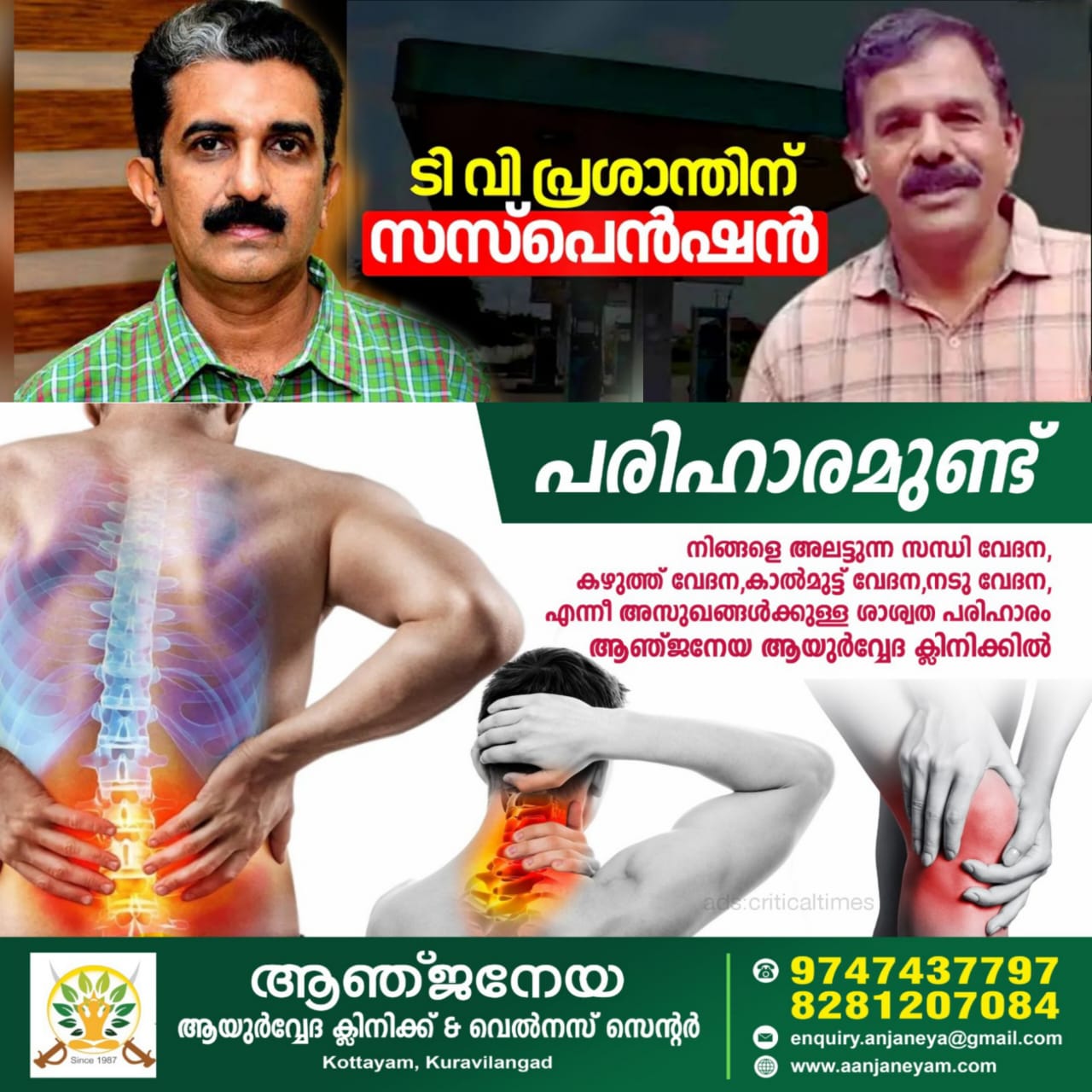 പരിയാരം മെഡിക്കൽ കോളേജ് ജീവനക്കാരനും എ.ഡി.എം നവീൻ ബാബുവിന്റെ മരണത്തിനിടയാക്കിയ കൈക്കൂലി ആരോപണം ഉന്നയിച്ച പെട്രോൾ പമ്പ് അപേക്ഷകനുമായ ടി.വി. പ്രശാന്തിന് സസ്പെൻഷൻ. സംസ്ഥാന ആരോഗ്യ വകുപ്പാണ് പ്രശാന്തിനെ സസ്പെൻഡ് ചെയ്തത്.