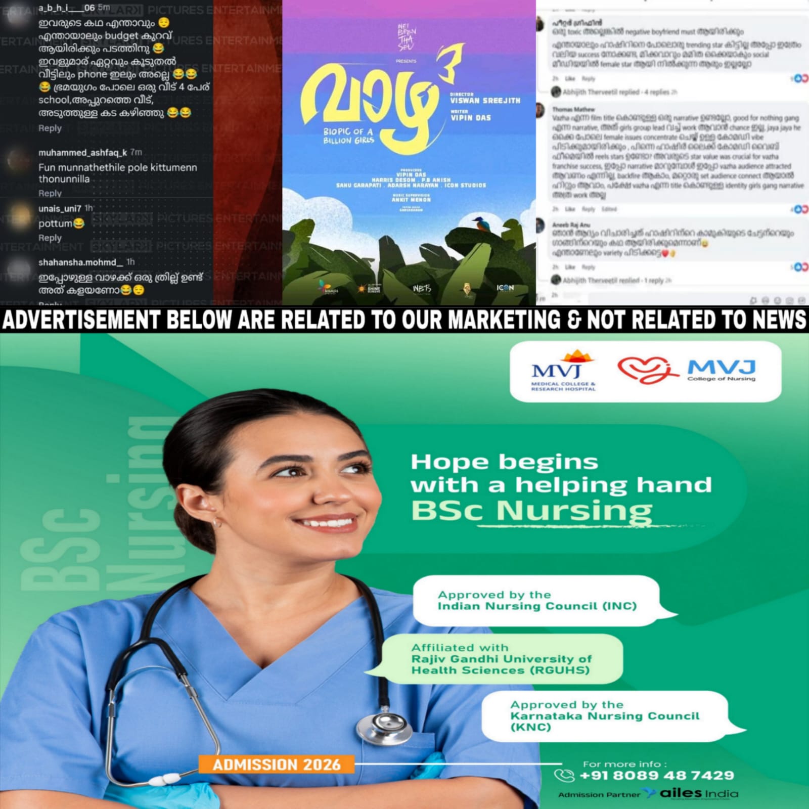 വാഴ 3 – ബയോപിക് ഓഫ് എ ബില്യൺ ഗേൾസ്’ എന്നാണ് ചിത്രത്തിന്റെ പേര്. പ്രഖ്യാപനത്തിന് പിന്നാലെ സോഷ്യൽ മീഡിയയിൽ നിറഞ്ഞ കമന്റുകളും ഇപ്പോൾ ശ്രദ്ധനേടുകയാണ്. വിമർശന കമന്റുകളാണ് ഏറെയും. അതിന് കാരണം യുവതികളുടെ കഥ പറയുന്നു എന്നതാണ്. ‘ഇവളുമാർക്കെന്ത് കഥ ? വിവാഹം, ആർത്തവം, പ്രസവ വേദന അല്ലാതെ’, എന്നാണ് ചിലരുടെ കമന്റുകൾ.