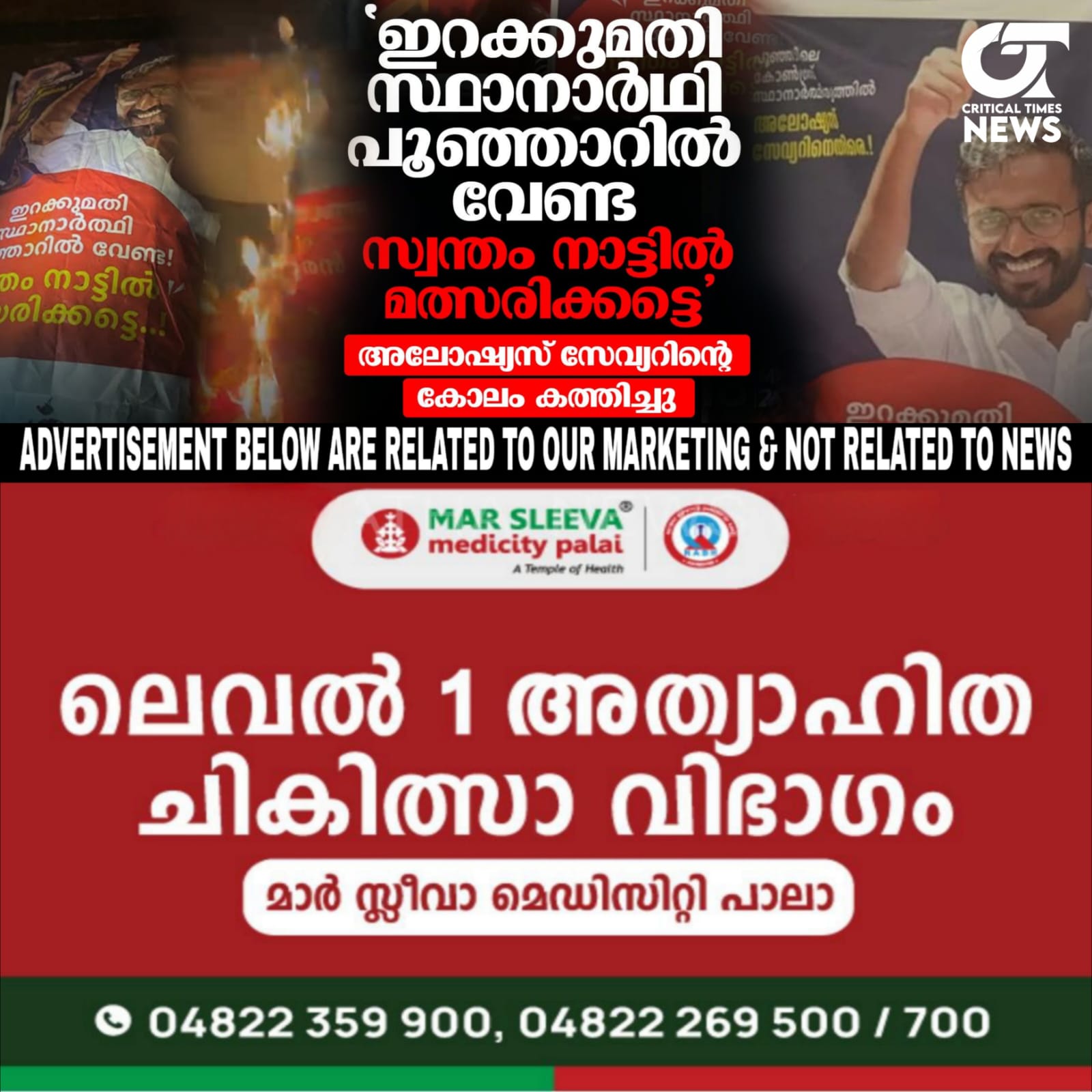 പൂഞ്ഞാർ നിയമസഭാ മണ്ഡലത്തിൽ കോൺഗ്രസ് സ്ഥാനാർത്ഥി പ്രഖ്യാപനത്തിന് മുന്നോടിയായി സാധ്യത പട്ടികയിലുള്ള നേതാക്കൾക്കെതിരെ വ്യാപകമായി പോസ്റ്റർ പ്രതിഷേധം. കെ എസ് യു സംസ്ഥാന പ്രസിഡന്റ് അലോഷ്യസ് സേവ്യറിനെതിരെ മണ്ഡലത്തിന്റെ വിവിധ ഭാഗങ്ങളിൽ അജ്ഞാത പോസ്റ്ററുകൾ പതിച്ചിരിക്കുന്നത്. അലോഷ്യസിനെ “കെട്ടിയിറക്കിയ സ്ഥാനാർത്ഥി” എന്ന് എന്ന് ആക്ഷേപിച്ചാണ് പോസ്റ്ററുകൾ.